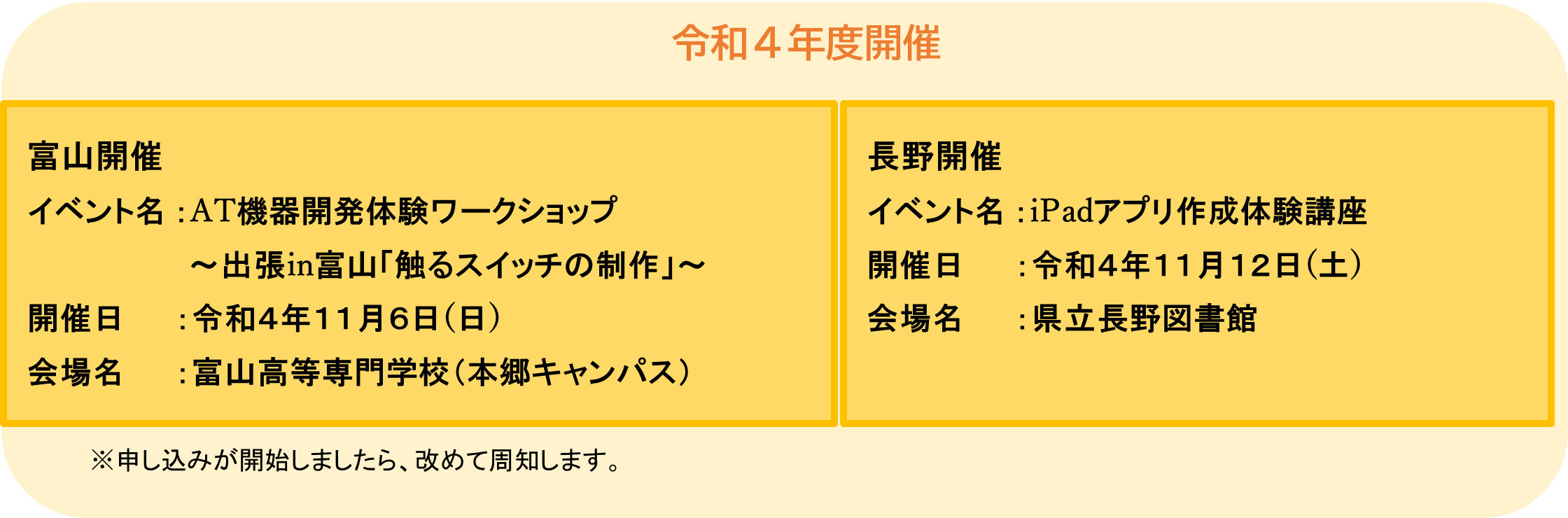 【技術でみんなを幸せにしたい!】のクラウドファンディングは、令和4年7月14日より募集を開始して、8月1日に目標金額に達成しました。延べ14名の方からご支援いただき、本活動について広めて下さった皆さま・ご寄付くださった皆様には、心より感謝申し上げます。本当にありがとうございました。皆さまからのご支援により、次年度のワークショップが実施されることとなりました。クラウドファンディングは令和4年10月1日(土)まで継続しています。引き続き応援よろしくお願いいたします。