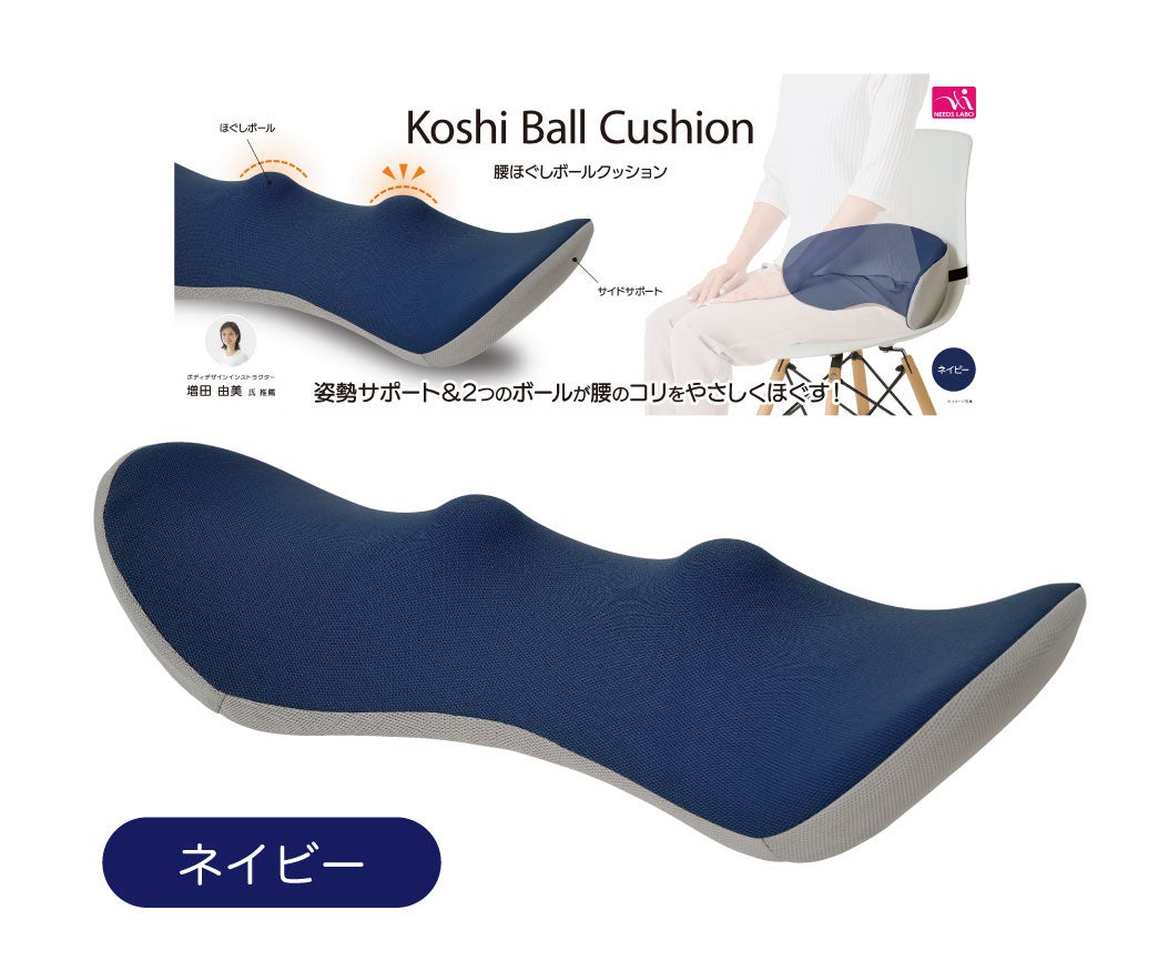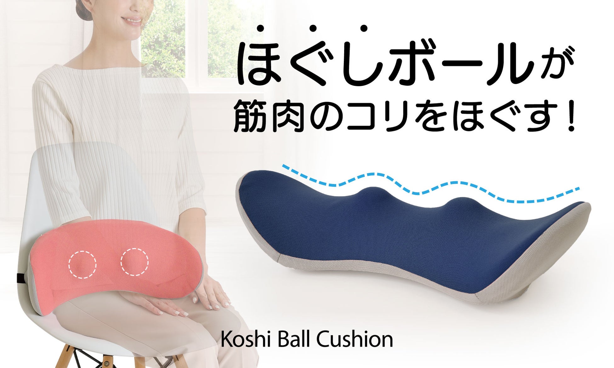 2つのボールの指圧効果で腰の筋肉のコリを押しほぐし、座り姿勢を快適にサポートするクッション