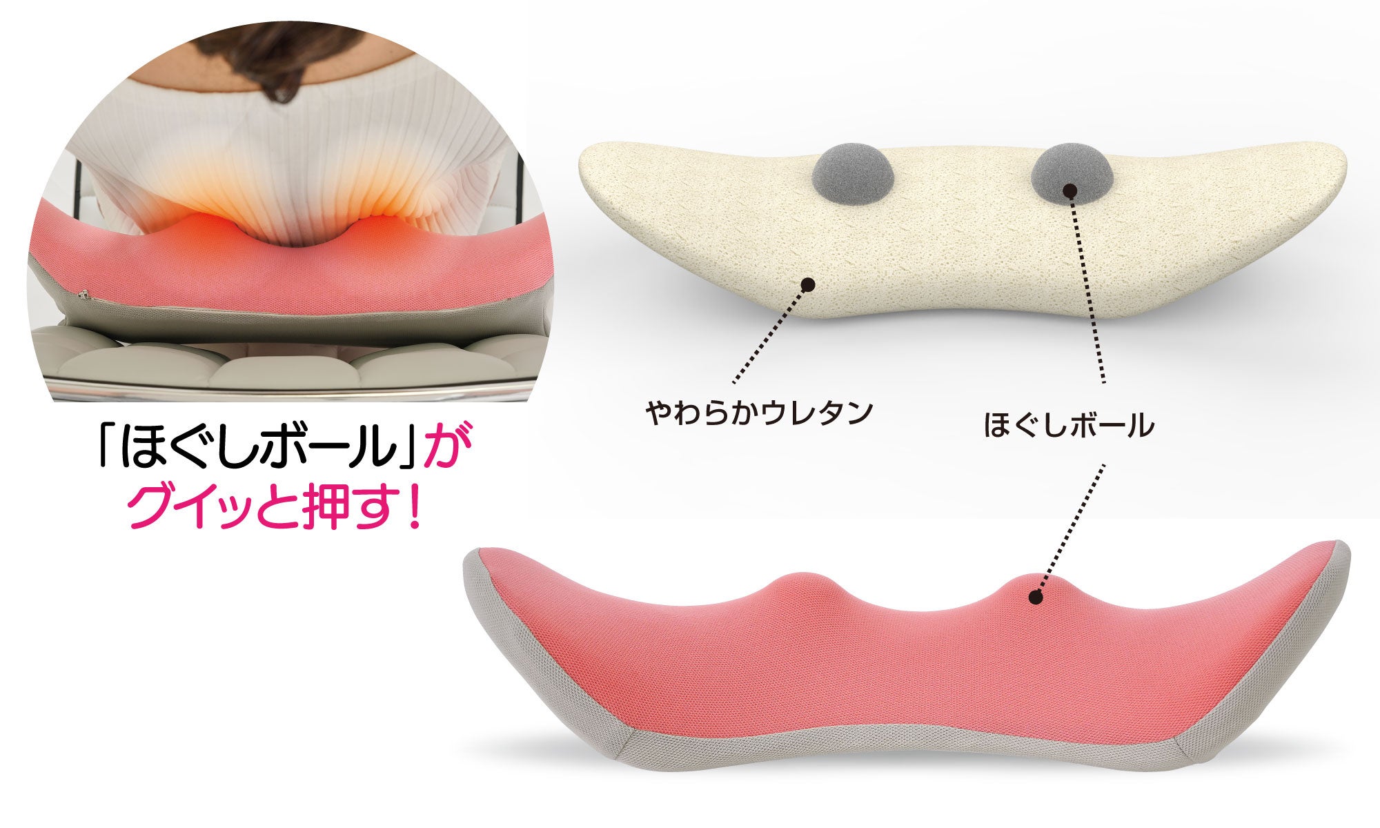 クッションに内蔵された「ほぐしボール」がもたれるたびにグゥ~ッと筋肉にアプローチ!