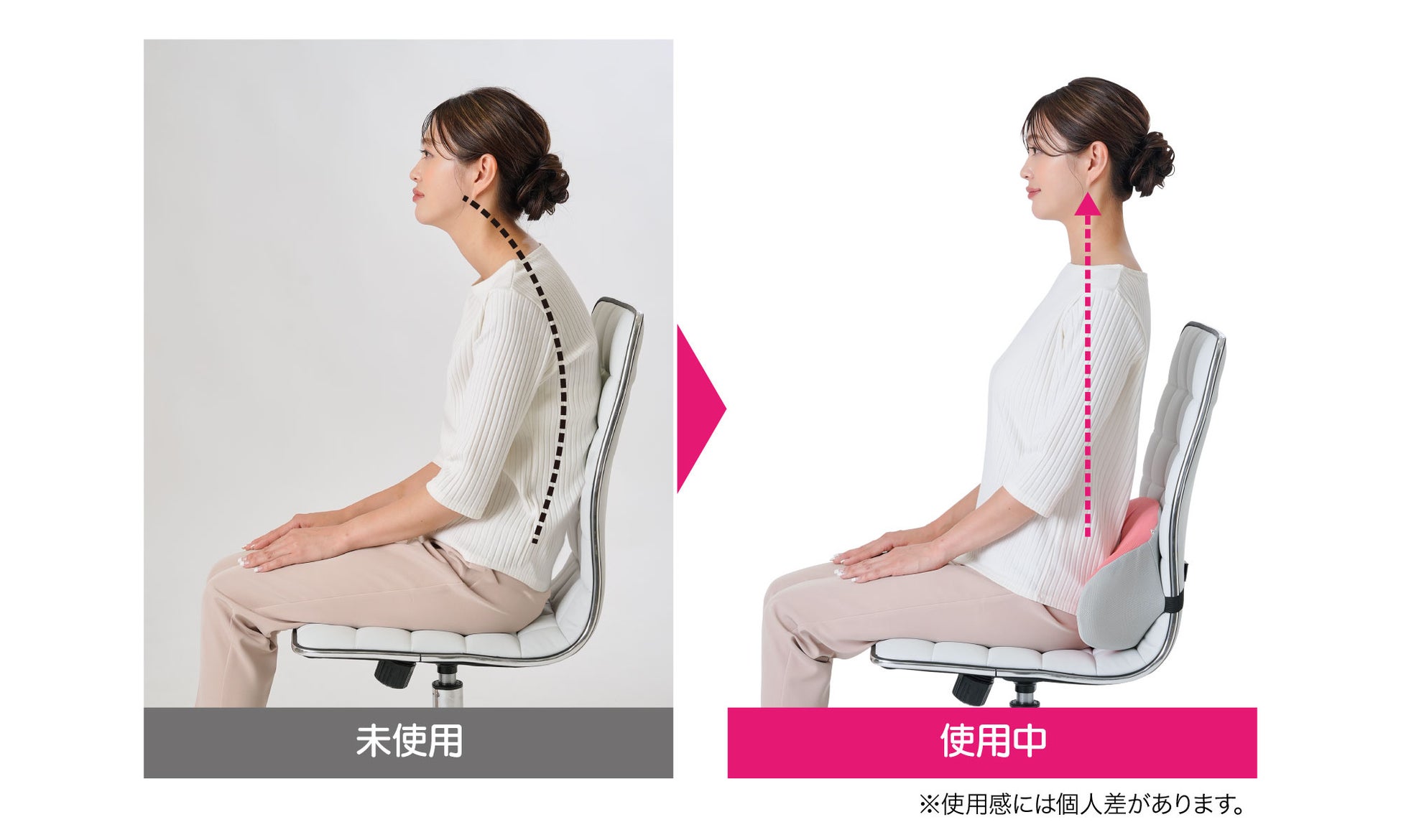 イスの背もたれと背中のすき間を埋めることで、自然な姿勢を意識できるようにサポートします。