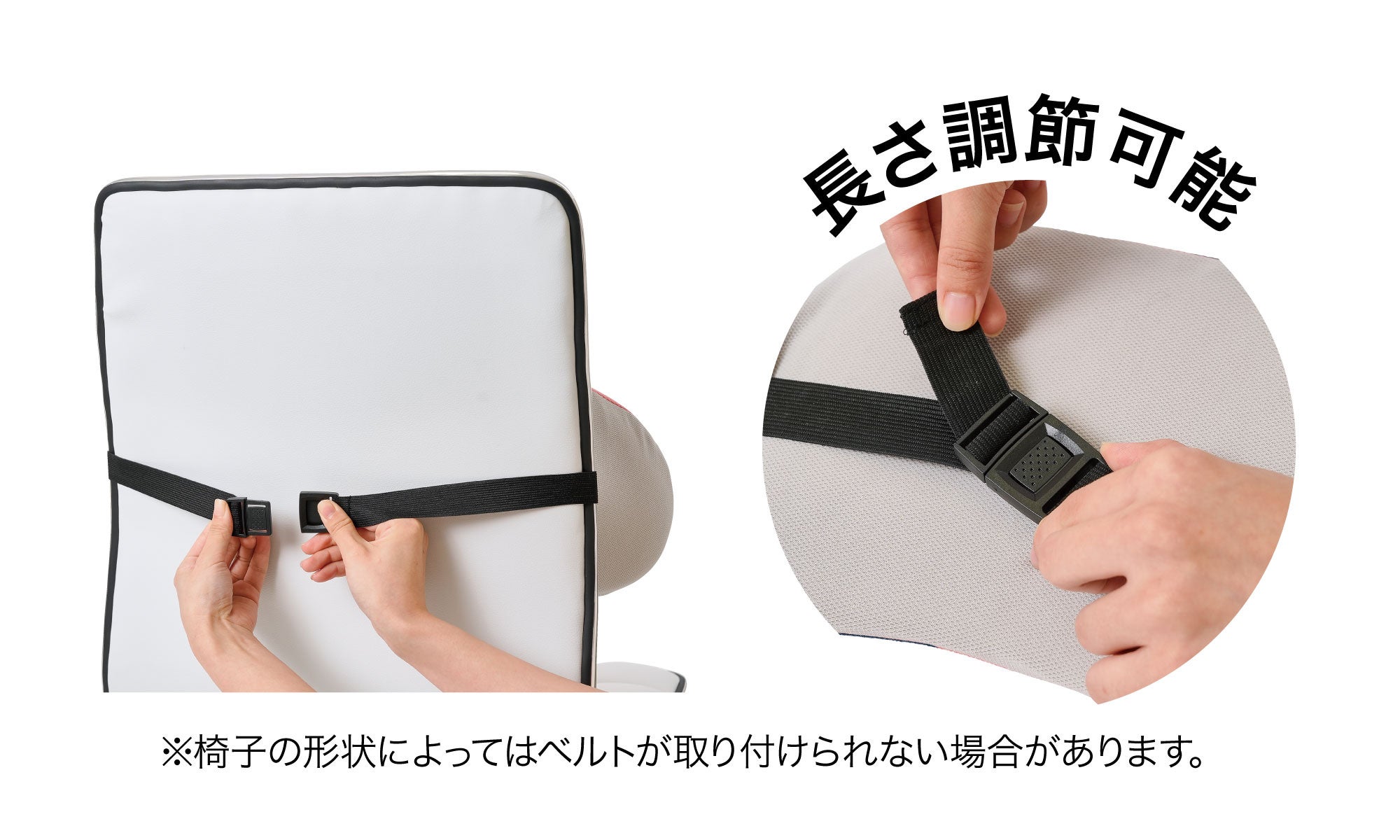 椅子に合わせてサイズ調節ができ、ずれにくく自分にピッタリのポジションをキープできます。