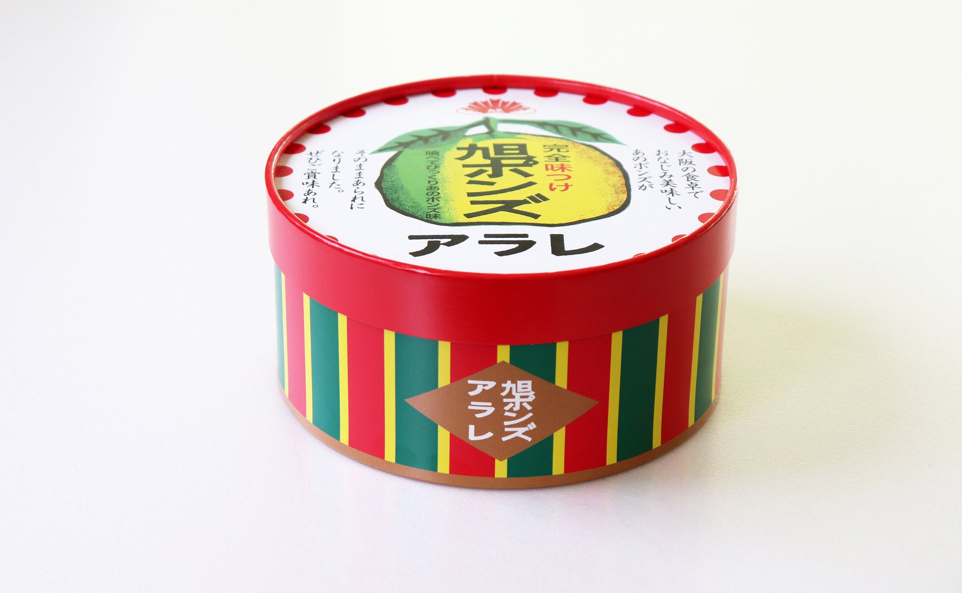 「旭ポンズ」に熱を加える工程を可能なかぎり無くし、どうしても必要な乾燥工程の加熱も必要最小限に抑えました。それでも薄まってしまう柑橘類の香りを補うために、スダチ果汁パウダーを添加し、「旭ポンズ」の味を再現することができました。 「旭ポンズ」というとても繊細な原料を丁寧に丁寧に扱い、大阪府民に愛される「旭ポンズアラレ」が完成しました。