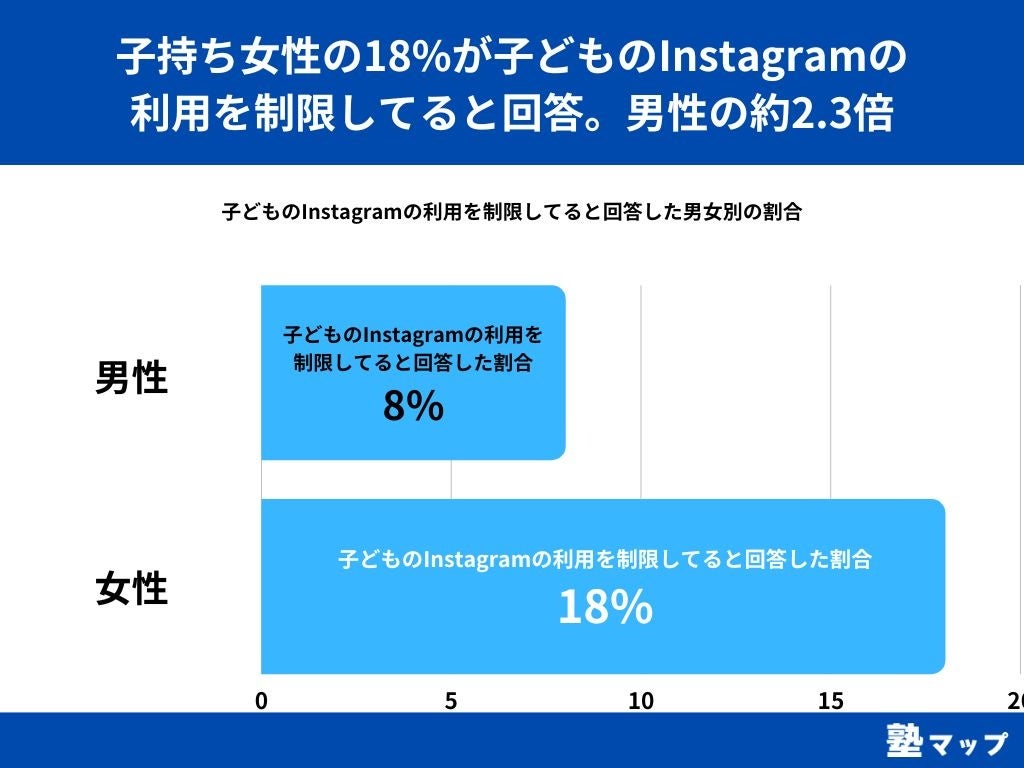 【子持ち女性の18%が子どものInstagramの利用を制限してると回答。男性の約2.3倍】