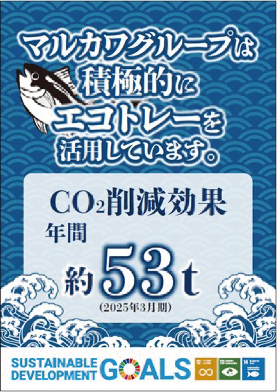 マルカワグループはエフピコのエコ製品を売り場で積極的に使用することで、CO2の排出抑制に貢献してきました。2025年3月期は53tのCO2排出量を抑制できる見込みです。また、2026年3月期にはCO2排出量抑制『年間55t』を目指します。(※エフピコの算定データに基づく)回収資源から再生されたエコ製品を売場で使用することで持続可能な社会の構築を目指してまいります。
