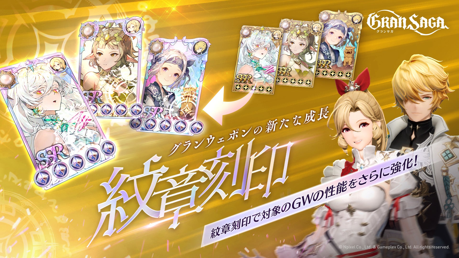 紋章刻印対象グランウェポンにロアSSRGW「カリヤ」「クララ」、オルタSSRGW「ハル」が追加されます。