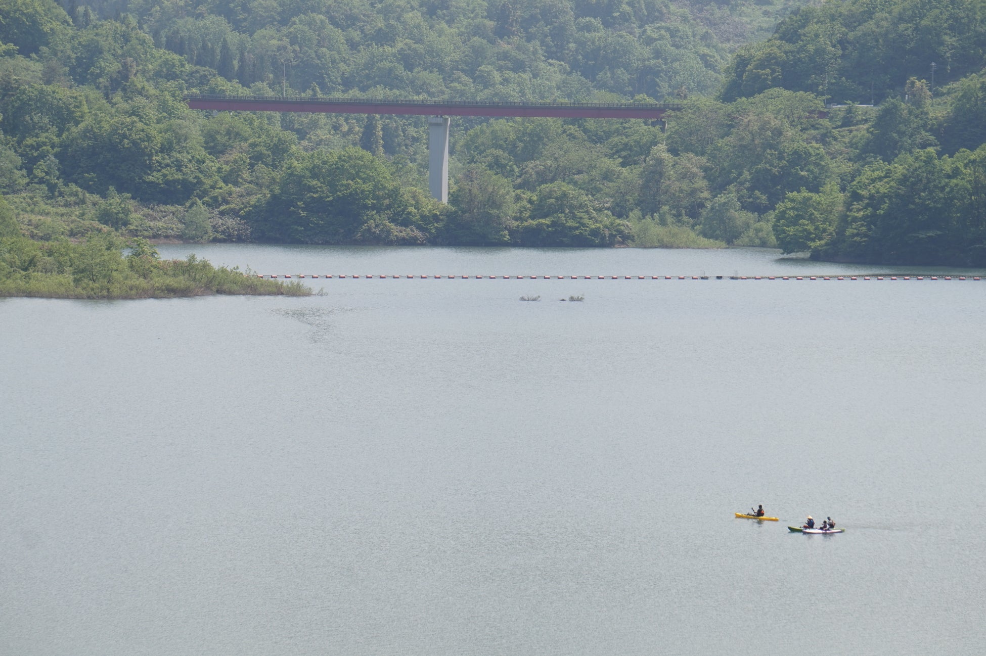 ●通常は利用できない大谷ダムの浮桟橋下流部で、パドルスポーツ体験