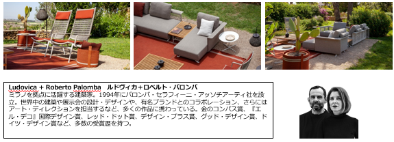 今回、ポルトローナ・フラウが展開する『Boundless Living Outdoor Collections』では、「The Secret Garden(シークレット・ガーデン)」・「Solaria(ソラリア)」の2つのシリーズのほかに、イタリア・ミラノを拠点に活躍する注目の日本人デザイナー大城健作のデザインによる屋外用照明や、アウトドアスペースに個性を加える小物アイテムも入荷しました。