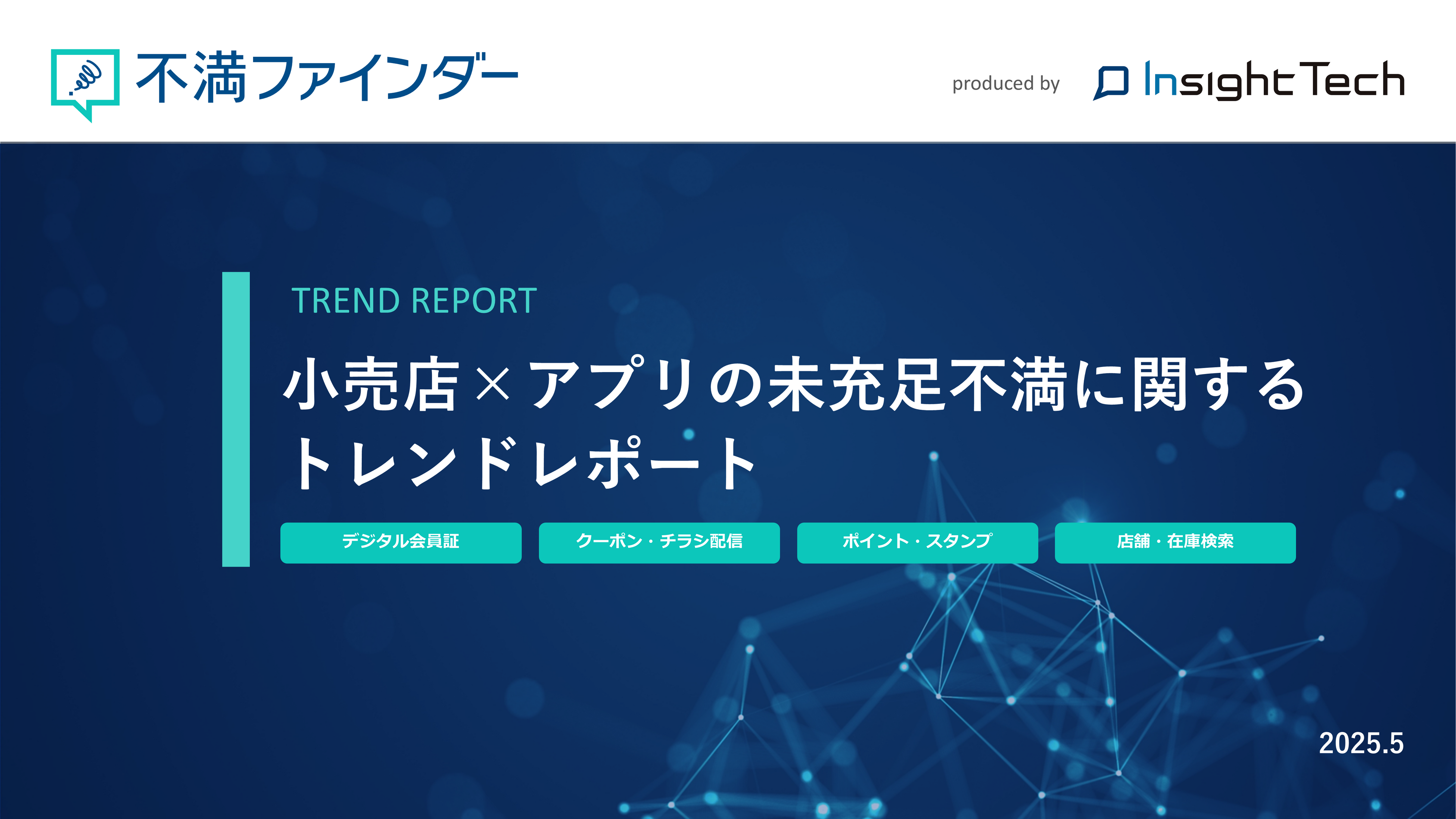 不満買取センターのInsight Techが、「小売店×アプリの未充足不満」に関するトレンドをまとめたレポートを公開