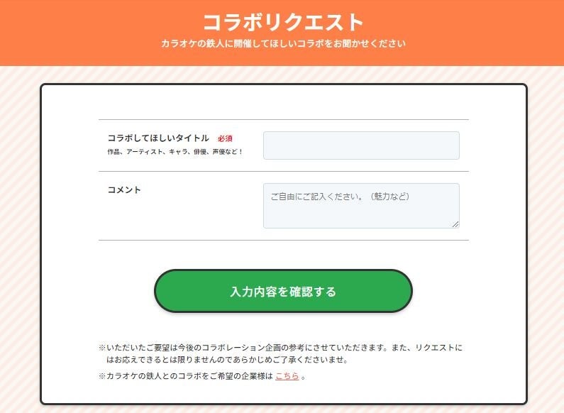 <カラオケの鉄人コラボリクエストフォーム>