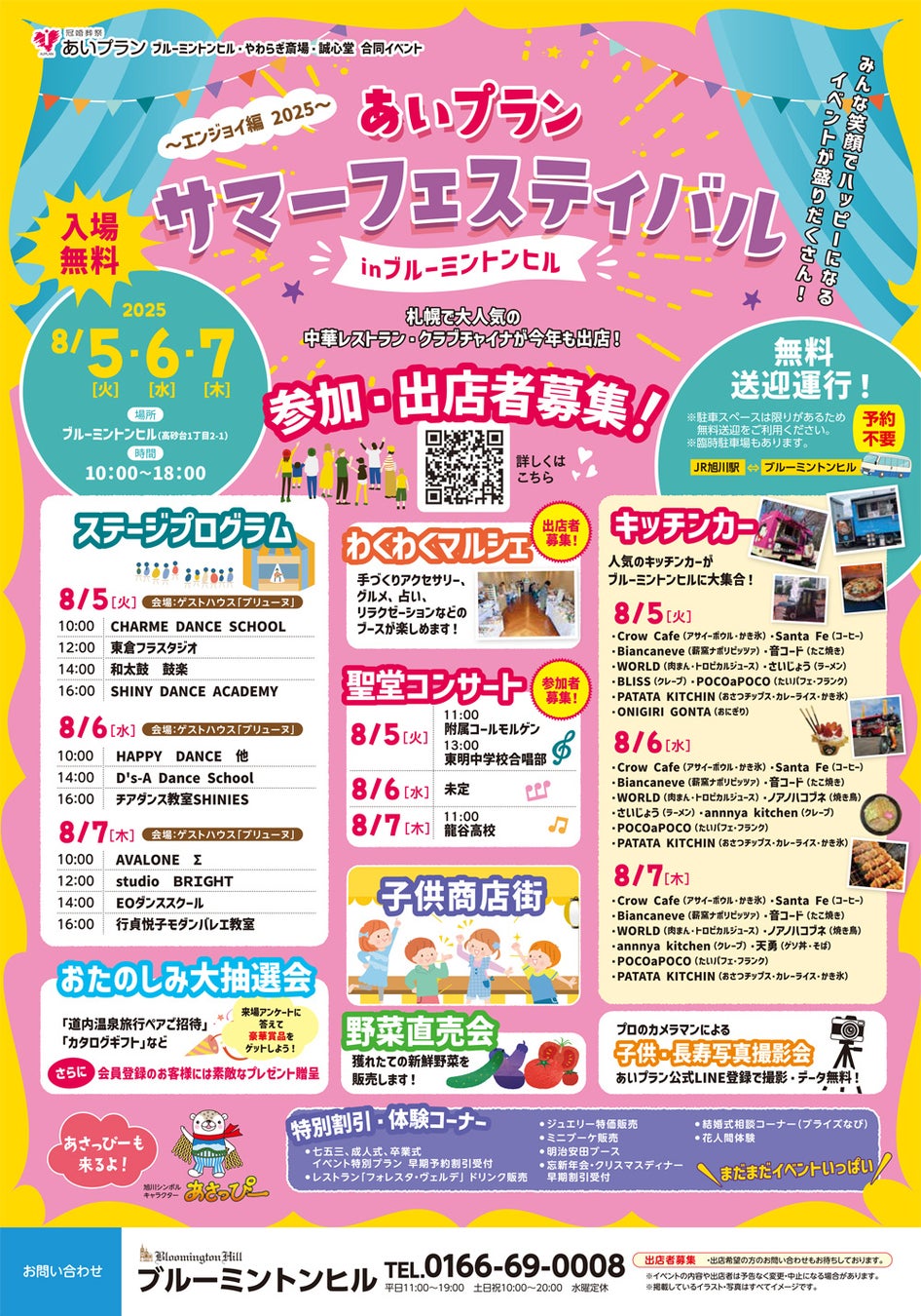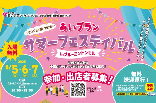 株式会社あいプラン(本社:北海道札幌市、代表取締役:新道いくみ)は、2025年8月5日(火)から8月7日(木)までの3日間、北海道旭川市の結婚式場「ブルーミントンヒル」にて『2025あいプランサマーフェスティバル』を開催いたします。入場無料。
