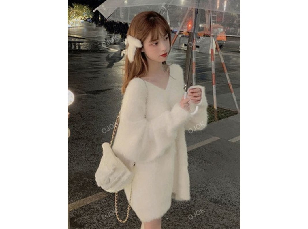 商品名:無地柄 ドロップショルダー ふわふわ セーター