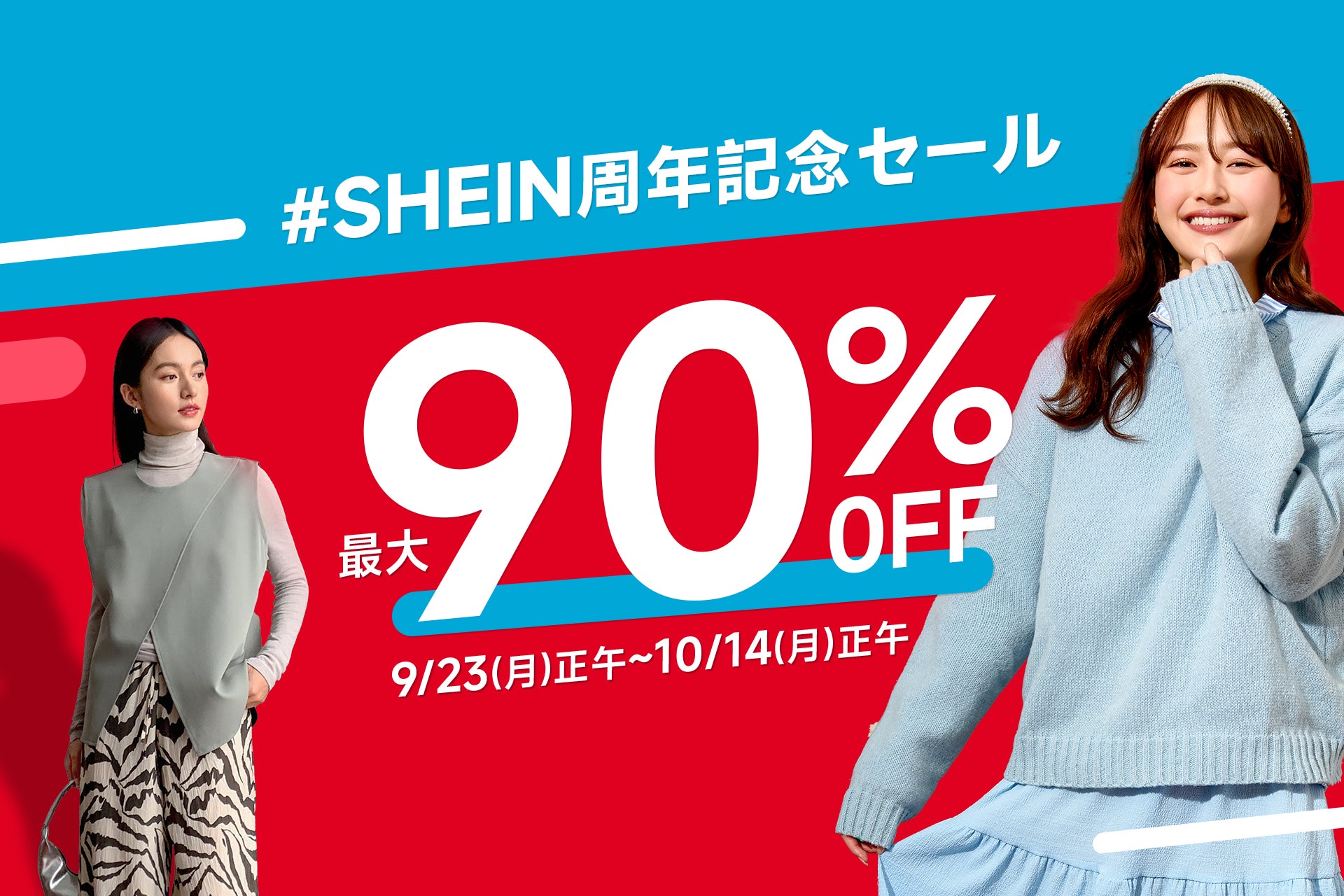 SHEIN 周年記念セール!3週間連続でお買い得なキャンペーン実施中対象商品50万点以上のうち、最大90%OFFもご用意
