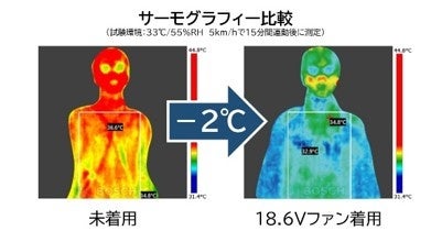 また、ファン付きウェア(8V)着用時と比べても最大14%低減します。