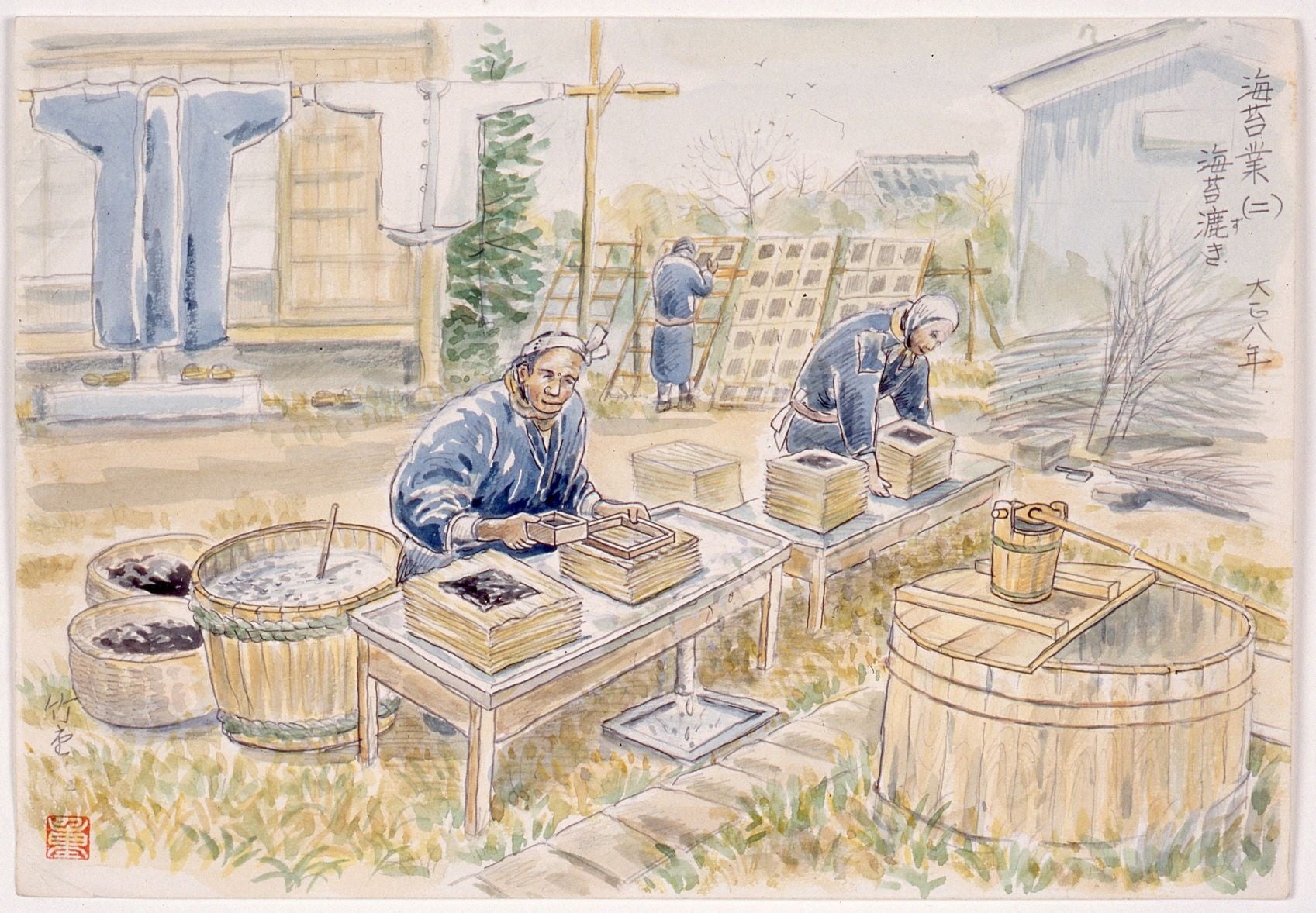 竹内重雄 「海苔業 (二) 海苔漉き」 1919(大正8)年(品川歴史館所蔵)
