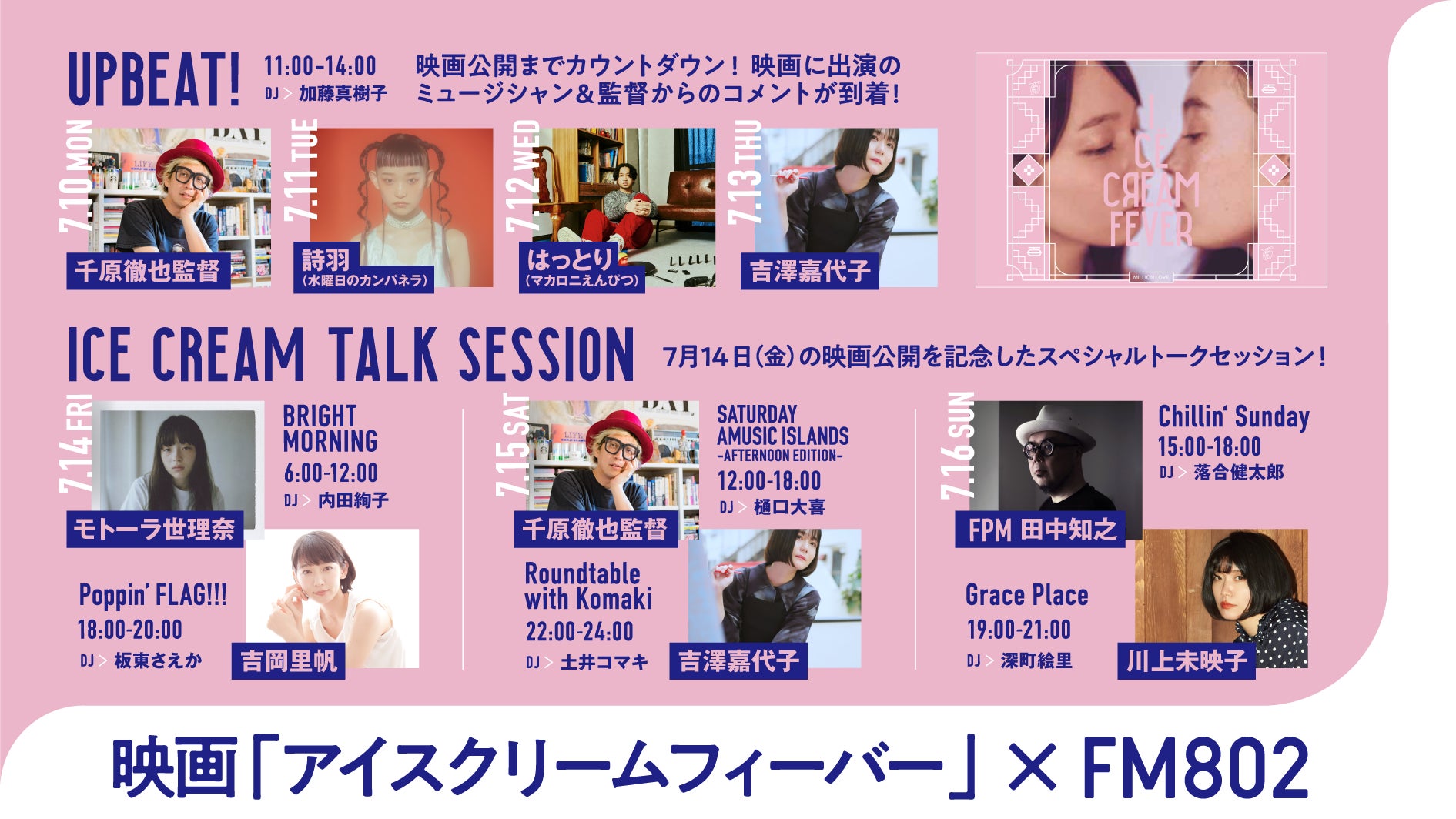 吉岡里帆・水曜日のカンパネラ 詩羽・川上未映子・千原徹也監督ら 映画「アイスクリームフィーバー」出演者や監督など関係者がFM802に続々登場!