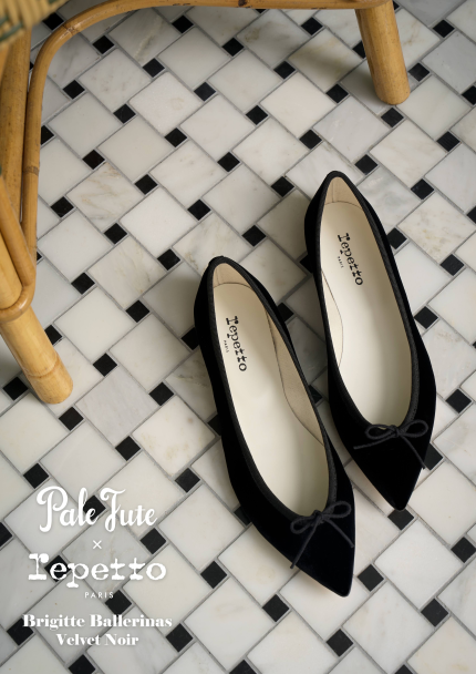 株式会社ルックが展開するRepetto(レペット)は、東京・代々木上原に佇む人気セレクトショップ「Pale Jute(ペール ジュート)」とのコラボレーションモデル『Brigitte Ballerinas / Velvet Noir』を全国のレペットショップにて順次発売いたします。2015年の登場以来、ブランドの定番アイテムの中で唯一のポインテッド・トゥモデルとして永く愛されて続けているBrigitte。ブラックのベルベットテキスタイルを取り入れ、大人の女性にぴったりのデザインに仕上がりました。「Pale Jute」のショップコンセプトをイメージした、シックでクラシカル、そして普遍的なコラボレーションモデルをお見逃しなく。2023年2月22日(水)より全国のレペットショップにて発売中、3月8日(金)よりオンラインストアにて発売予定です。