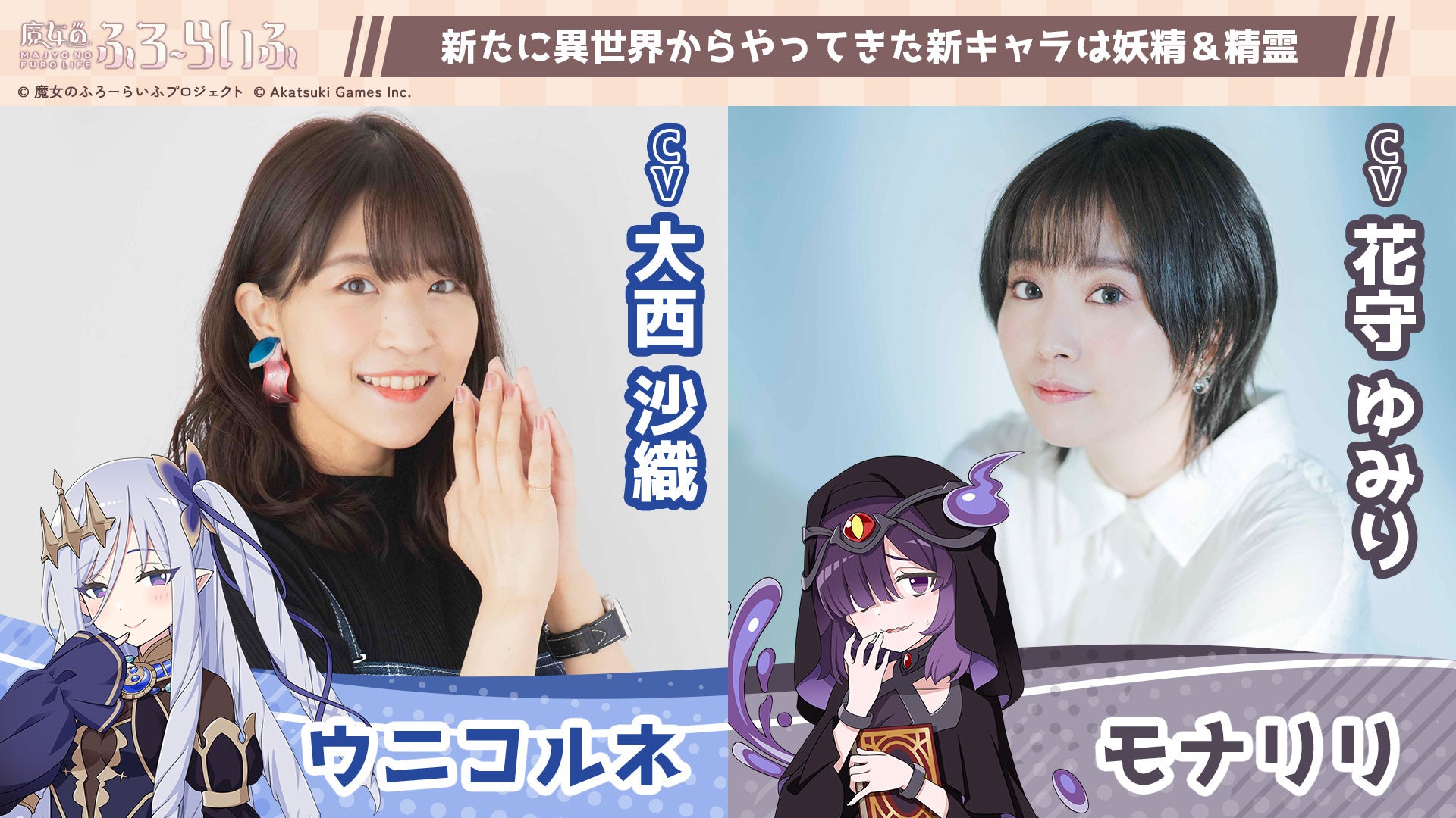 アカツキゲームスのIP創出プロジェクト『魔女のふろーらいふ』、異世界からやってきた妖精&闇の精霊の新キャラクター「ウニコルネ(CV:大西 沙織)」、「モナリリ(CV:花守 ゆみり)」を発表!