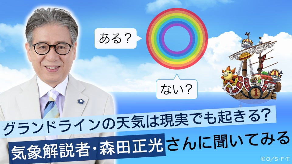 さらに、気象解説者の森田正光氏による『ONE PIECE』に関する「記事コンテンツ」も公開します。『ONE PIECE』の世界を一周する“偉大なる航路(グランドライン)”での異常気象や天気に関するエピソードを、専門家目線で解説した本特集オリジナル記事です。