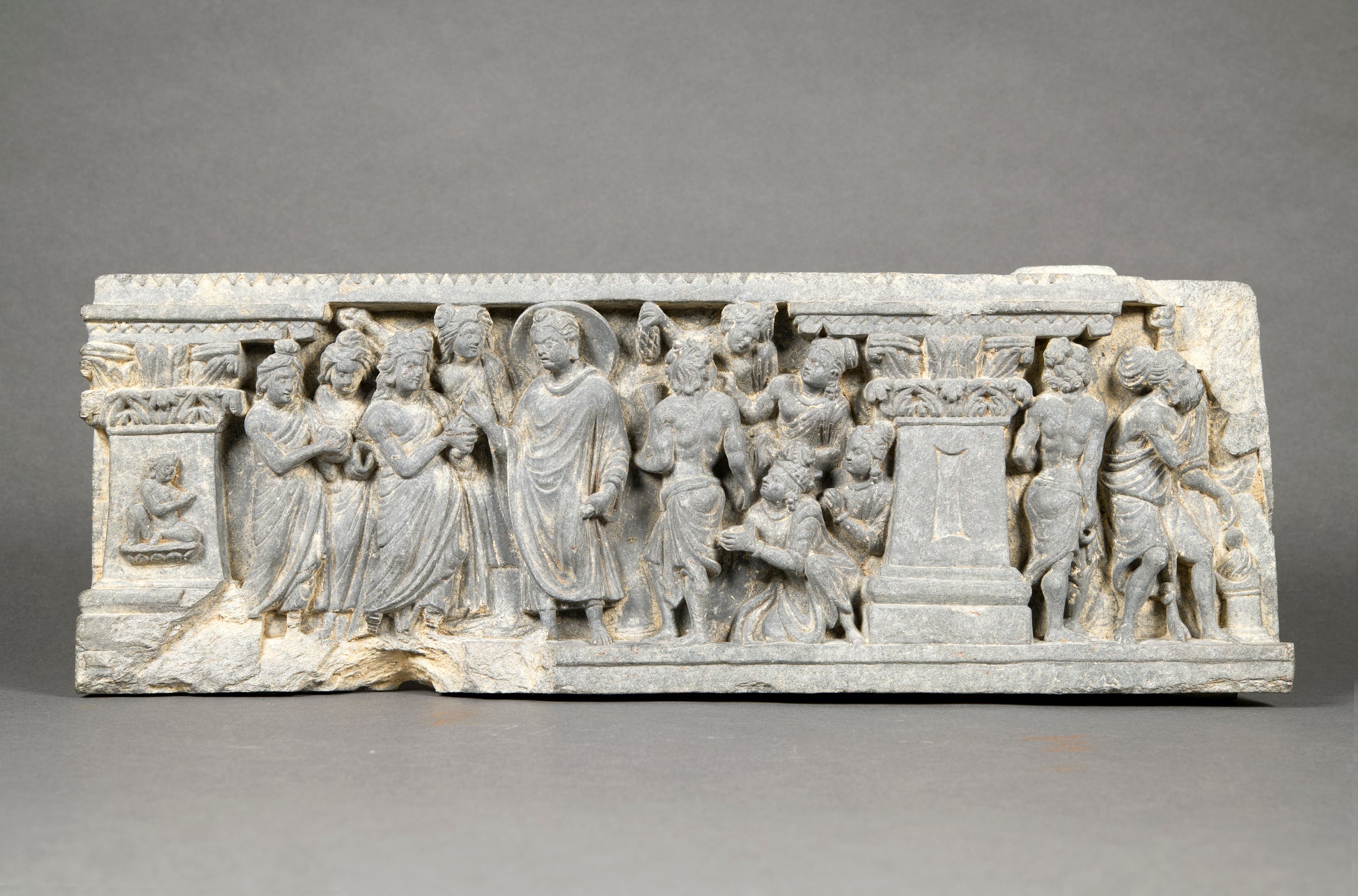 現在のパキスタン北西部を中心とするガンダーラ地域には、ギリシアやローマ、そしてペルシアといった西方の文化が絶えずもたらされました。この地域の仏教も強くその影響を受け、仏教美術の中にも西方の神々の姿を見つけることができます。今回の特集展示では、前2世紀~後5世紀頃のガンダーラや中央アジアに認められる西方の要素を取り上げ、当時の仏教を発展させた多様な文化的土壌を紹介します。