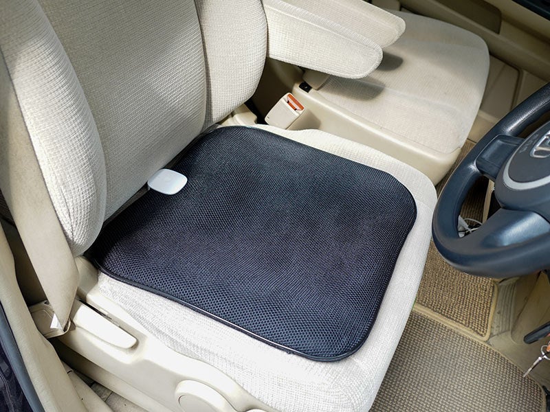 真夏の車内でも蒸れない、ケーブルレス4連ファン内蔵の夏用クッション