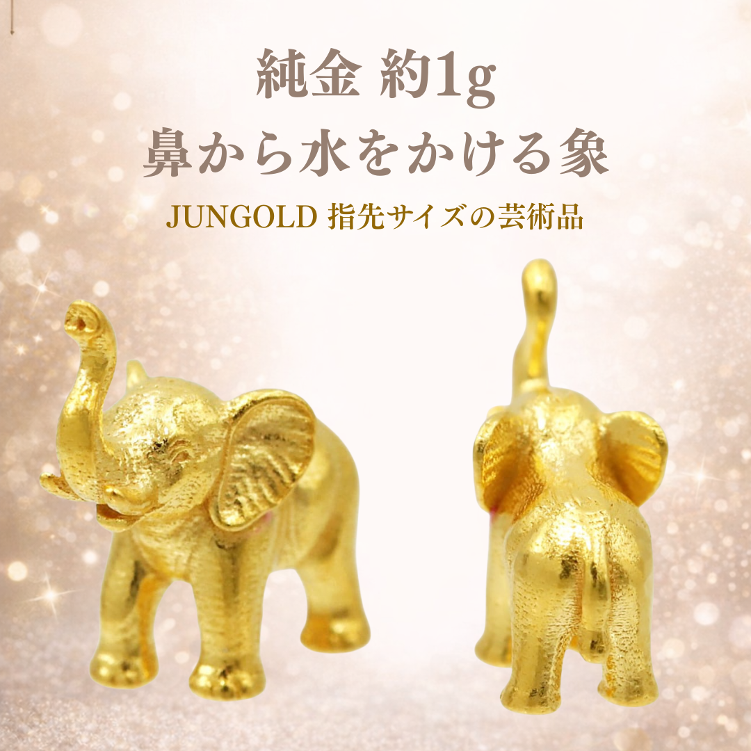 【お得な価格は年内まで】純金 約1g鼻から水をかける象JUNGOLD 指先サイズの芸術品が登場。