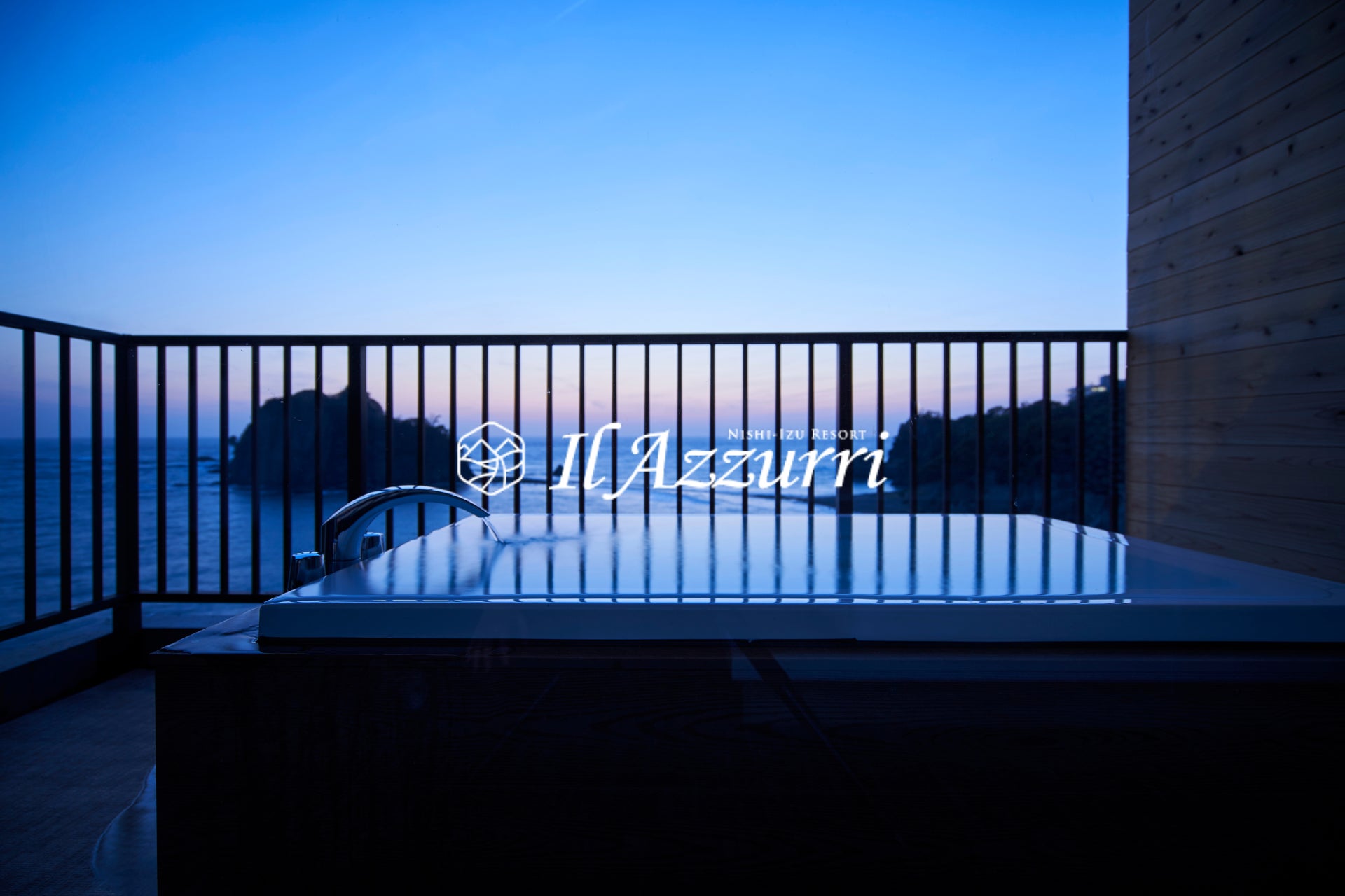 「il azzurri(イル・アズーリ)」は、東京から車で約3時間、駿河湾を望む西伊豆町の絶景ロケーションに佇む、全46室オーシャンビュー&全室露天風呂付きのリゾートホテルです。ホテル名の「il azzurri」はイタリア語で「紺碧」「英雄」を意味し、ホテルから望む西伊豆の海は、イタリア・カプリ島の紺碧の海を彷彿とさせます。