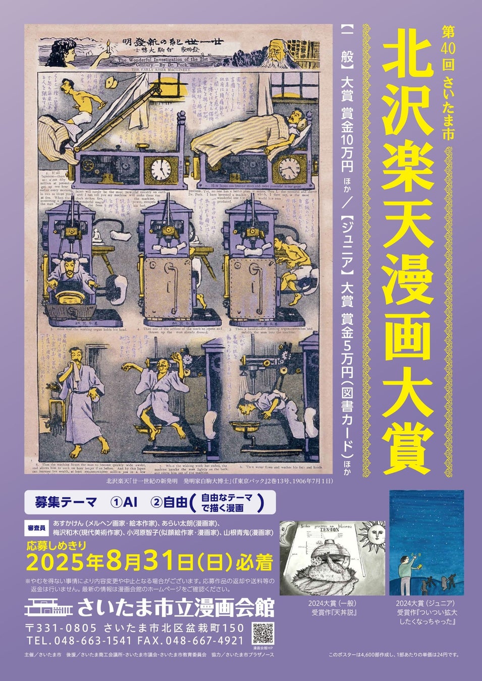 さいたま市立漫画会館では「第40回さいたま市北沢楽天漫画大賞」の作品を募集します。