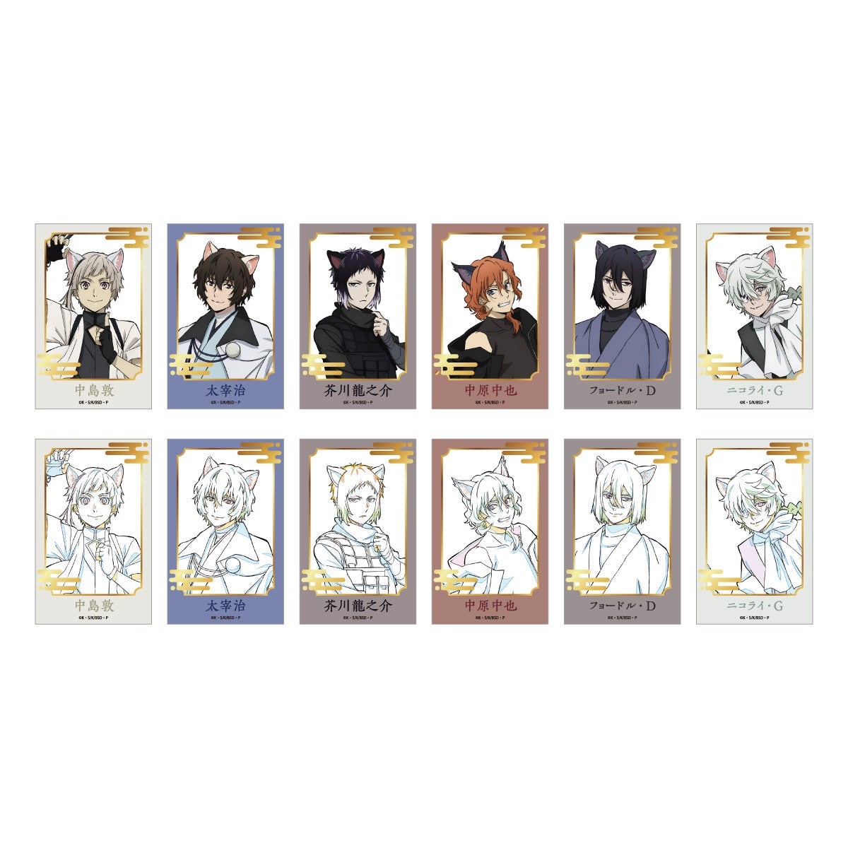 新規描き下ろしはニンジャタウンの忍灯(しのび)に扮した中島敦(なかじまあつし)、太宰治(だざいおさむ)、芥川龍之介(あくたがわりゅうのすけ)、中原中也(なかはらちゅうや)、フョードル・D(ディー)、ニコライ・G(ジー)を描いた6名をラインアップしています。