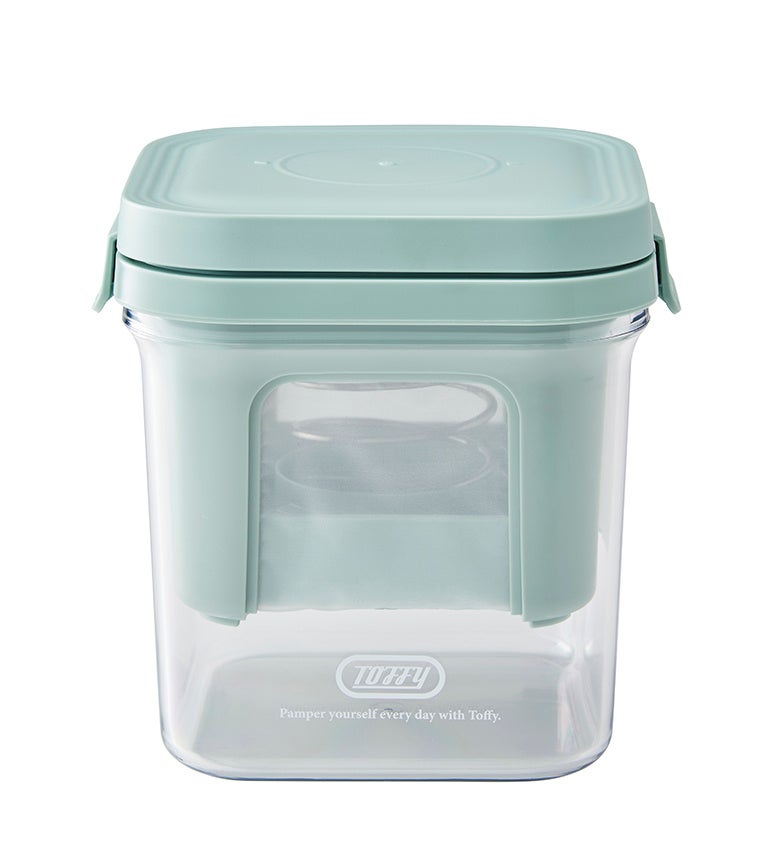 「Toffy チーズのような濃厚水切りヨーグルトメーカー」は、2段階の水切りで、今までにない濃厚な新感覚の水切りヨーグルトが作れる製品です。手作りや市販のヨーグルトを入れるだけ。ギリシャヨーグルトのようなやわらかい口当たりから、モッチリとして非常に濃厚なチーズのような味わいの水切りヨーグルトまで、水切り時間で2段階の固さに調節可能。作った水切りヨーグルトは、さまざまなレシピで楽しむことができます。カラーはToffyシリーズで人気の「ペールアクア」1色展開です。