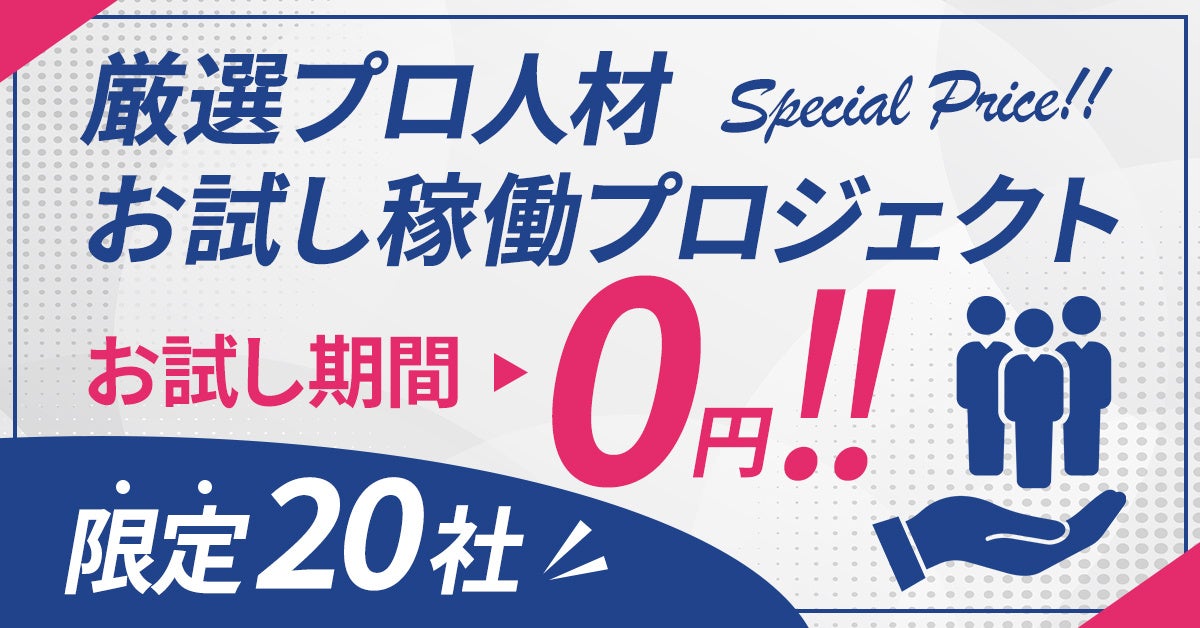 プロ人材お試し稼働プロジェクト/1ヶ月無料契約可能(限定20社)/業務委託人材の活用推進