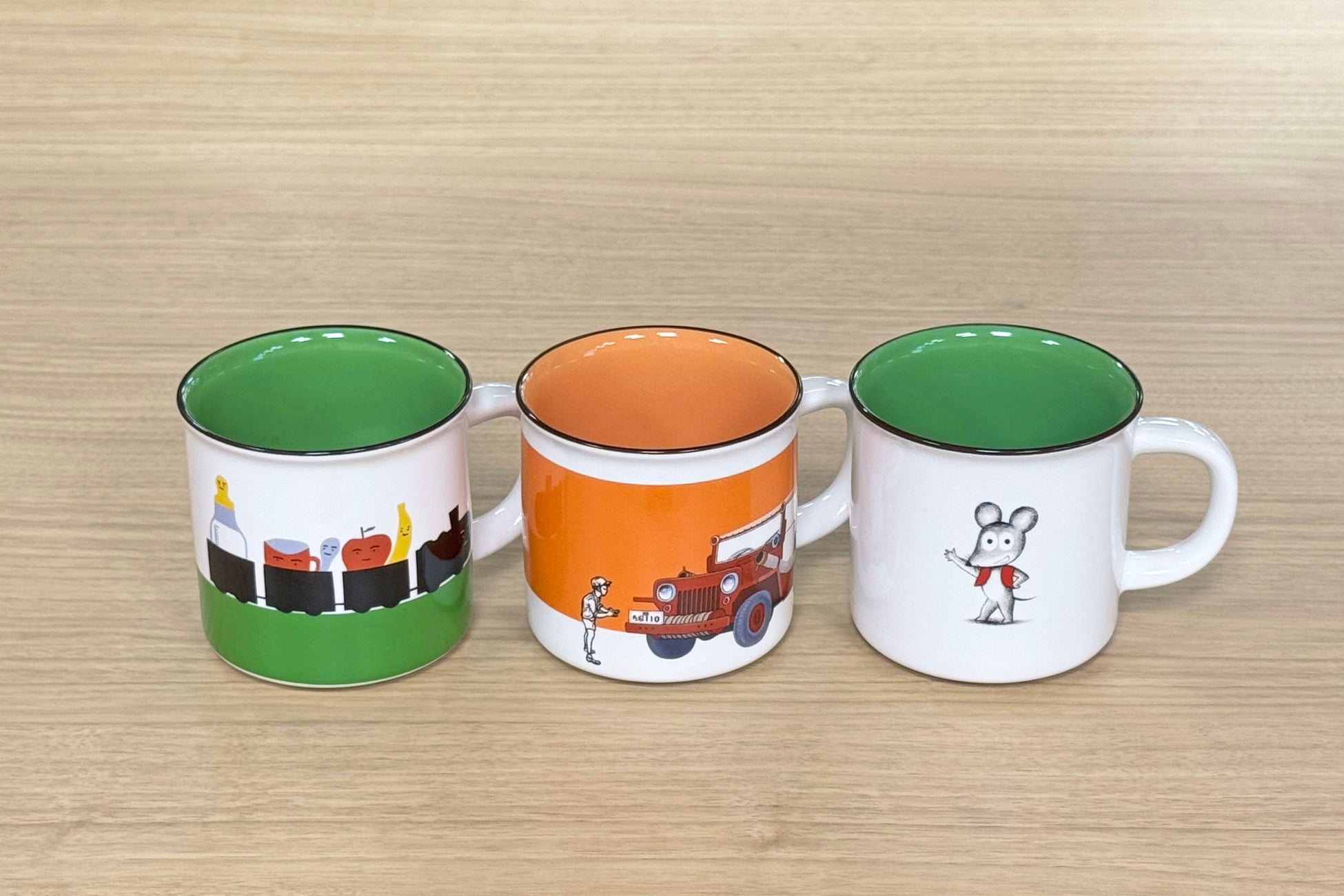 2018年2月からスタートした絵本ナビ限定商品6か月リレー企画「ロングセラー絵本マグカップ」シリーズは、福音館書店の6冊のロングセラー絵本が、1ヵ月に1つ、マグカップになって登場する夢のような企画として始まりました。好評につき、追加で3つの柄をリリースし、世代を超えて愛されている絵本9作品がマグカップとなりました。