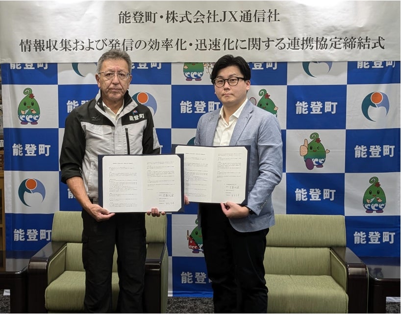 石川県能登町と、防災DXを推進する株式会社JX通信社(本社:東京都千代田区、代表取締役:米重克洋)は、能登半島地震を受けた能登町の今後の災害対応力強化を目的に、2024年9月20日(金)に、情報収集および発信の効率化・迅速化に関する連携協定締結式を実施いたしました。