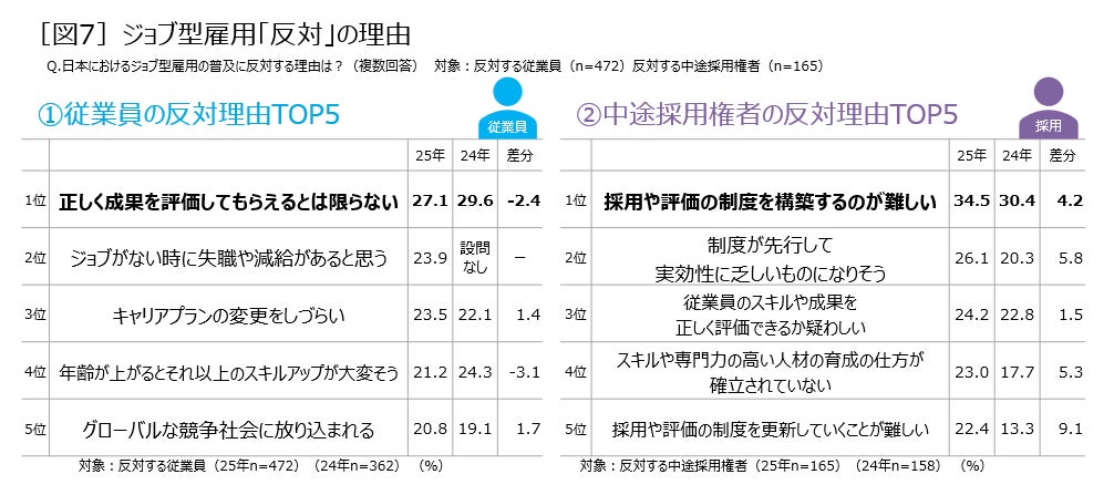 従業員は雇用への不安が大きく、中途採用権者はジョブ型ならではのメリットに注目