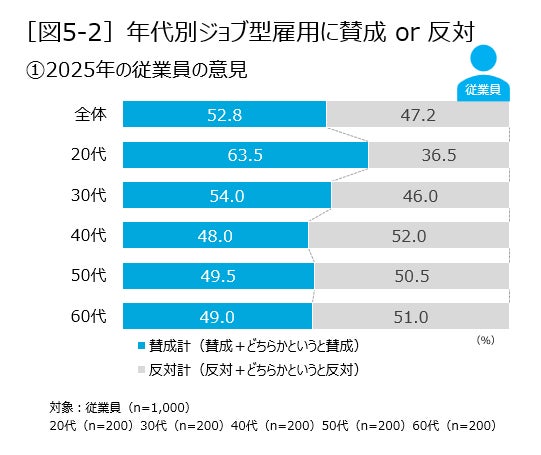 若い年代はジョブ型雇用に「賛成」が多いが、40代以上では「反対」の割合が半数超