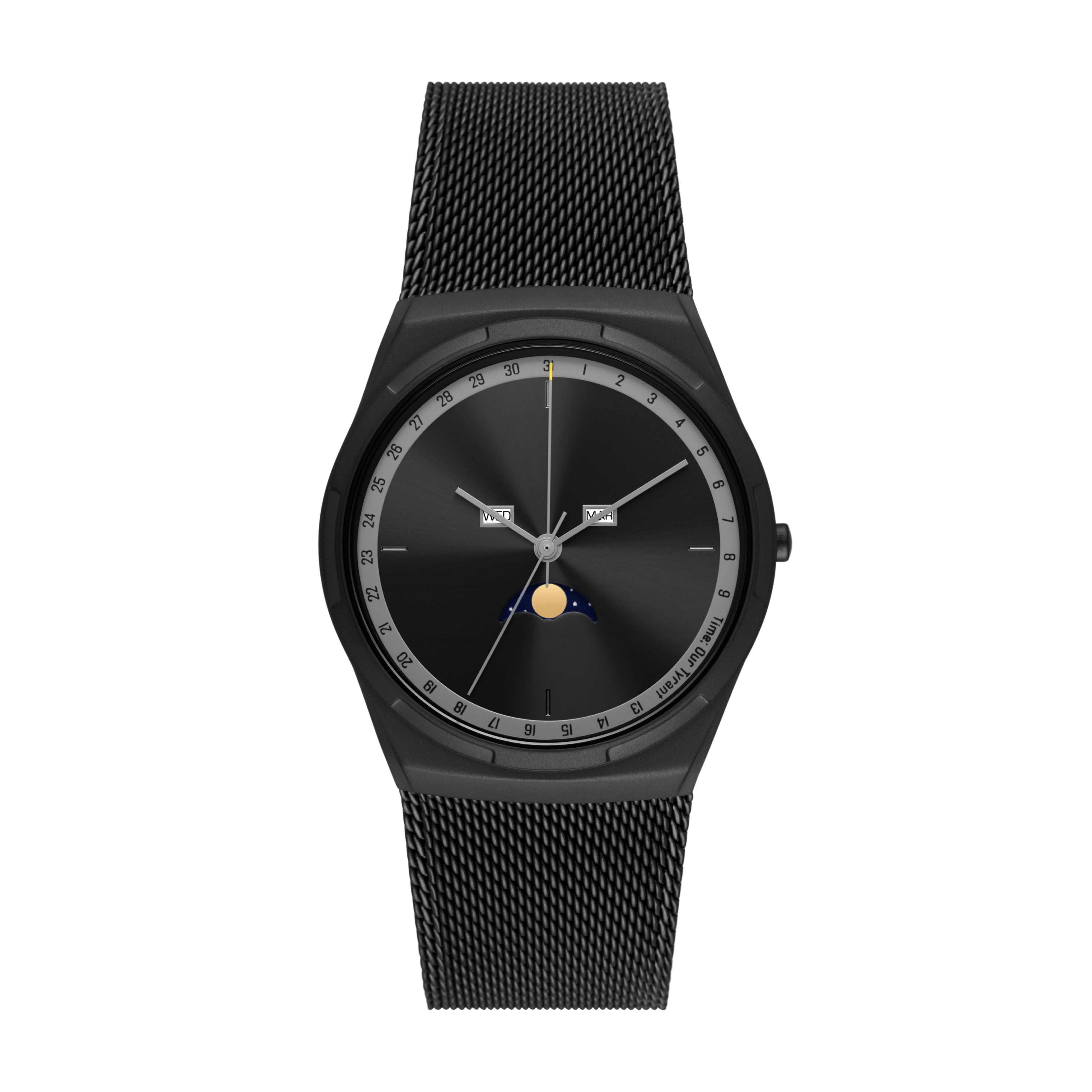 Soulland x Skagen コレクションは、スカーゲンの人気プラットフォーム「Melbye」をベースにデザインされています。日本製ムーンフェイズムーブメントを搭載し、時針、分針、秒針に加えて、ダイアル外周の日付を示すポインター、月と曜日を表示する2つの窓、弓形のサブダイアルが月の満ち欠けを教えてくれます。ムーンフェイズ機構やサンレイダイアル、特殊なエッチングなどすべて、Soullandの22年春夏コレクションのコンセプトとモダンデザインをオマージュした限定ウォッチとなっています。ケースとブレスレットには、リサイクルステンレススティールを50%以上使用、40MMケース径、25MM幅のストラップで、日本では¥25,300(税込)で発売します。