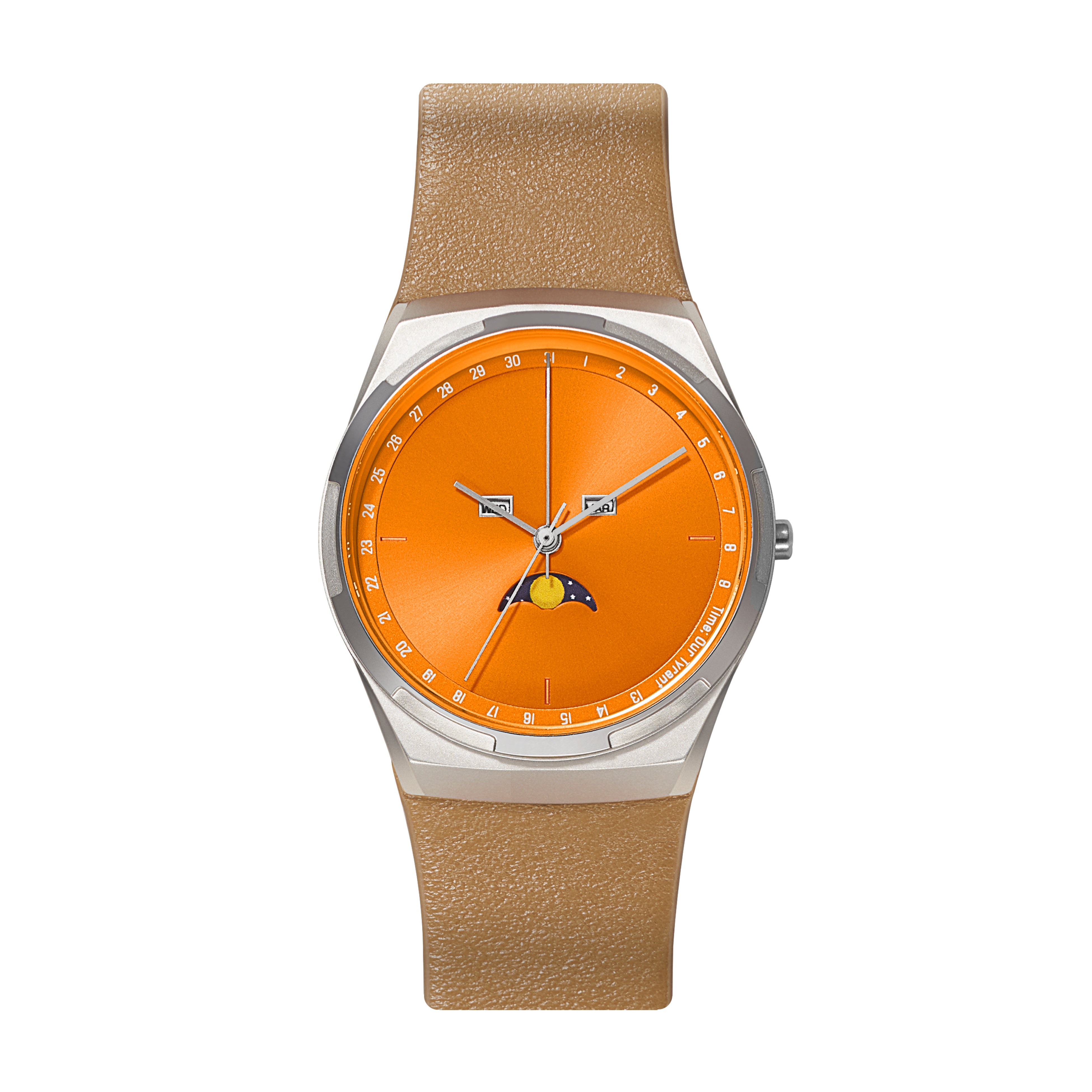 ケース径40mm、ケース素材:リサイクルステンレススティール、ストラップ素材:ステンレススティール、レザー