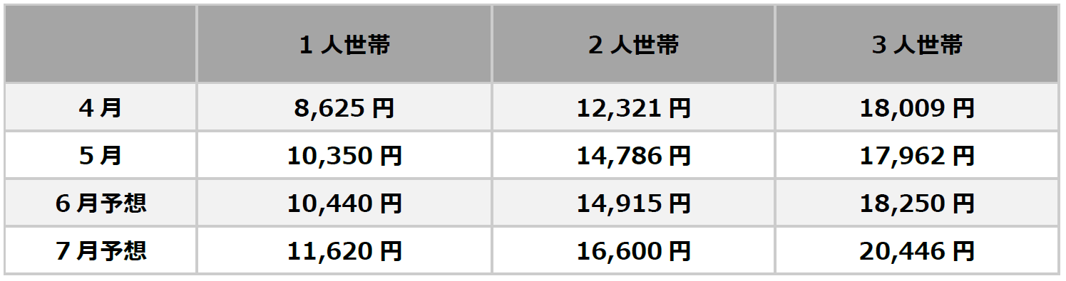 また、「enepi(エネピ)」ユーザーのデータをもとに、昨年9月から今年5月までの電気料金請求額の推移をまとめ、6月・7月の料金を予測しました。