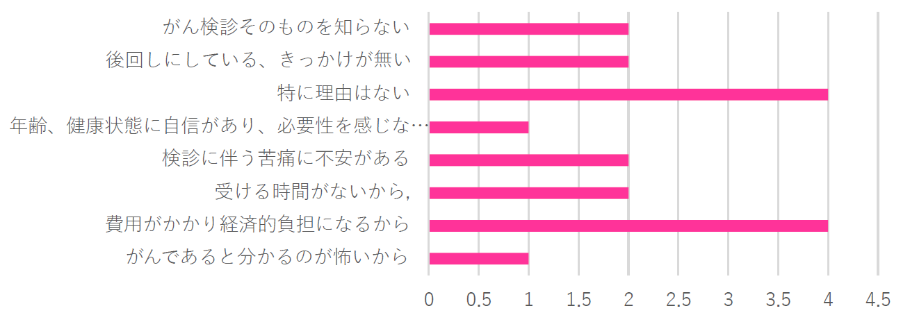 ・「がん検診を受診したことが無い」理由の1位は「費用がかかり経済的負担になるから」