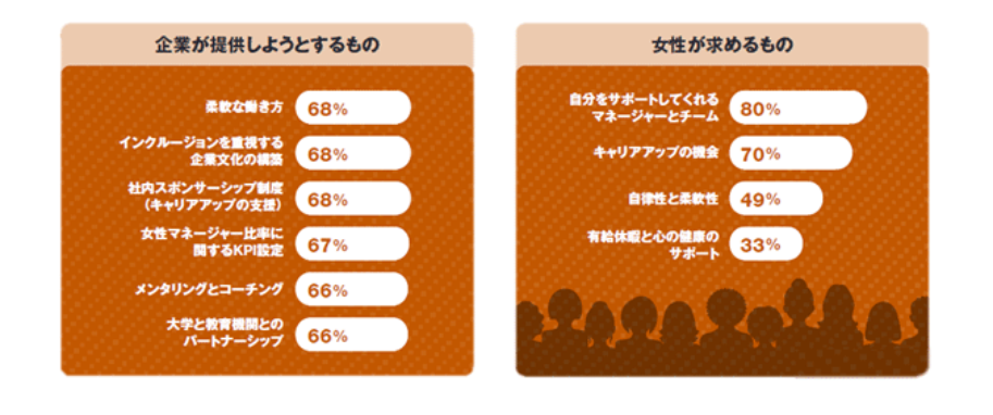 - 企業が女性社員に提供しようとするもの、女性が求めるものの違い