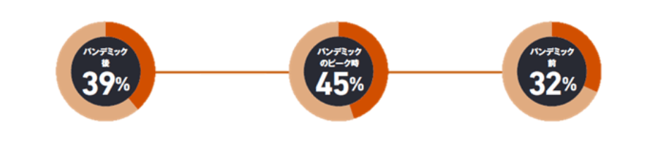 - 燃え尽き症候群の女性の割合:パンデミック前32%→パンデミック後39%