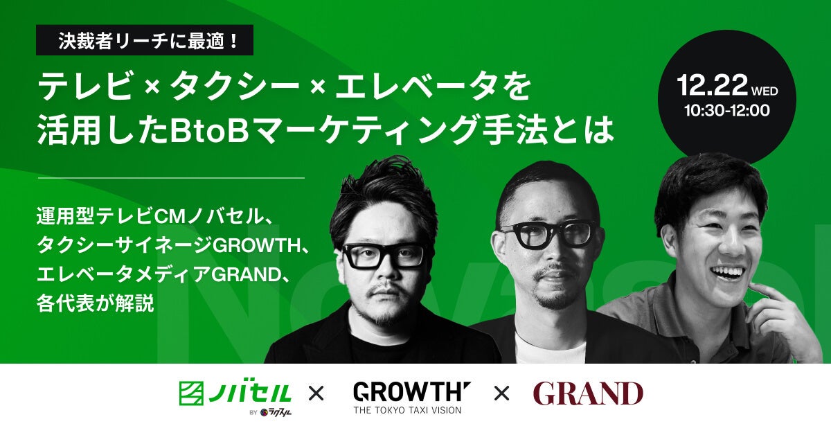 ~運用型テレビCMノバセル×タクシーサイネージGROWTH×エレベータメディアGRANDが解説するBtoBマーケティング~
