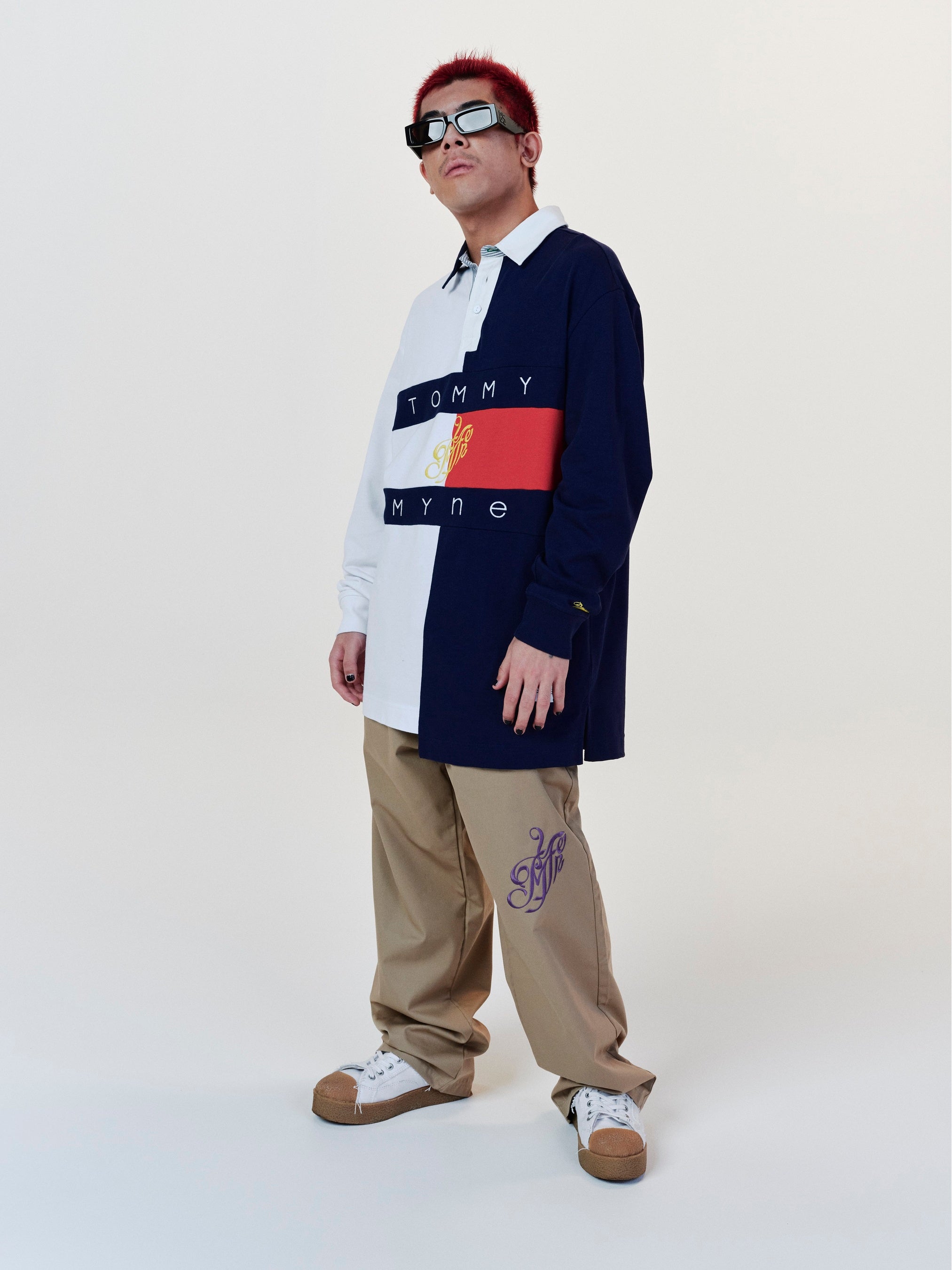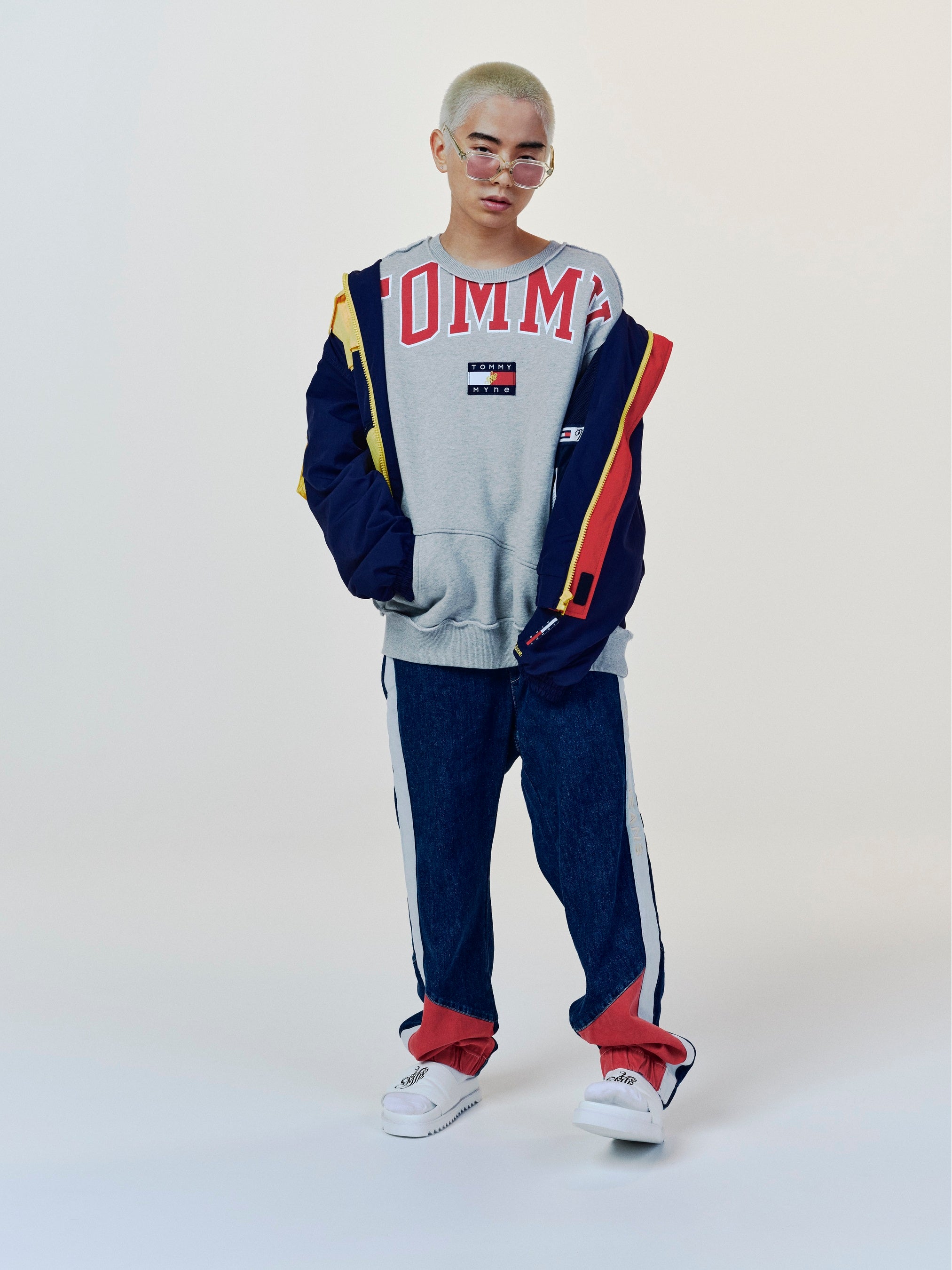 このカプセルコレクションは、マインの東京のストリートカルチャーを称えるクリエイションに、トミー ジーンズのヘリテージにモダンな捻りを加えたもので、定番なストリートウェアに斬新なテイストを加えています。メンズとウィメンズの9ピースからなるカプセルコレクションは、クラシックなデニム、両ブランドのロゴ入りプリント、90年代にインスパイアされたレガッタジャケット、アシンメトリーなサイジングとカラースキームのラガーシャツ、バーシティスタイルのロゴをあしらったクルーネックスウェットシャツが展開されます。ディテールは、前後を反転させたデザイン、カラーブロッキング、シグネチャーカラーであるレッド、ホワイト、ブルーを基調とした仕上がりとなっています。