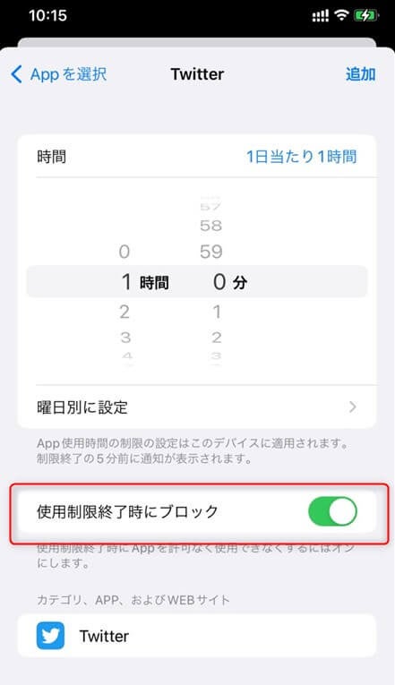 これで、アプリをずっと使用しても、「制限を無視」と「時間延長の許可を求める」が非表示になります。