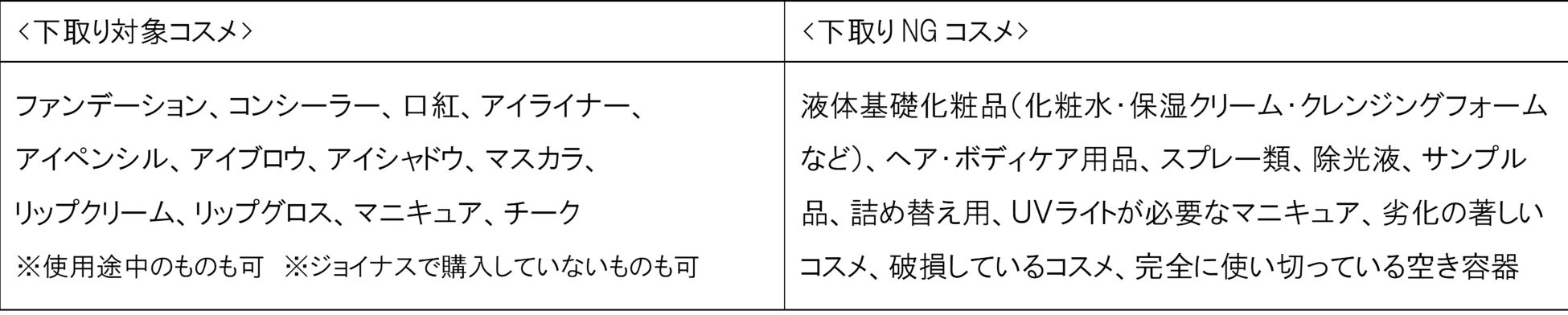 大好評の「コスメ下取り3DAYS」を今年も開催!2023年には3,000名さま以上、2024年には5,000名さま以上にご参加いただいた、ジョイナスで大人気のキャンペーンです。実際に使い始めると、思った色と違ったもの・肌に合わなかったものなど、使いきれずご家庭にあるコスメを有効活用いただける、3日間限定の機会です。