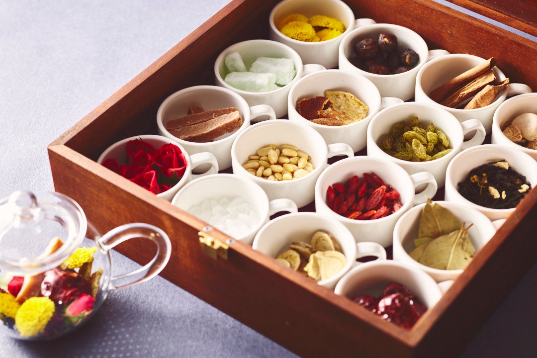さらにチャイニーズティーは料理に合わせてブレンドした、オリジナルティーのロンフォン八宝茶をふくむ9種からお選びいただけます。