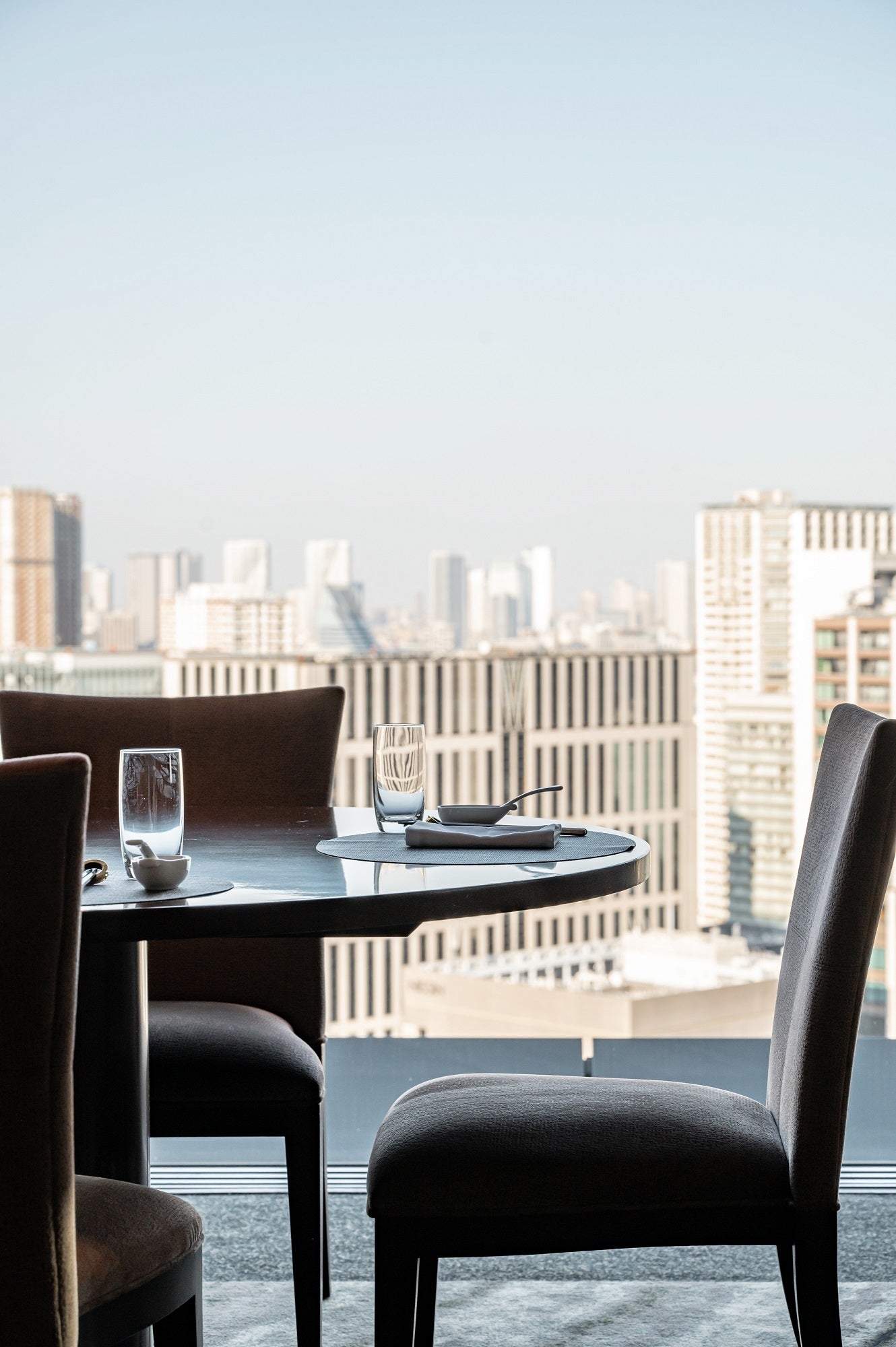 26階の「ザ・スコア・ダイニング」は、音楽を共有するために必要な“楽譜”になぞらえた4つのレストランが競演するエリア。多くの賞に輝くスターシェフたちによる、独創的な美食の数々を楽しめるデスティネーション・レストランです。ギリシャ語で“リズム”を意味するカフェ&バー「リュトモス」は、スコア・ダイニングの世界へお客さまをいざなうエントランスです。続くイタリアングリル「メロディア」は、音楽を構成する要素のひとつであるメロディをイメージ。「リュトモス」の空間とデザインをゆるやかに引き継ぎ、「メロディア」の空中に浮かぶ照明が音符を思わせます。東京のパノラマが広がる圧巻の眺望が堪能できる「チャイナシャドー」は、オーセンティックなチャイニーズをベースに新たな食材やエッセンスを掛け合わせた中国料理を提供します。そしてアトリウムの中央、「リュトモス」と「メロディア」の間には、鉄板焼「風音」。ストリングスが奏でる美食の競演をお楽しみください。