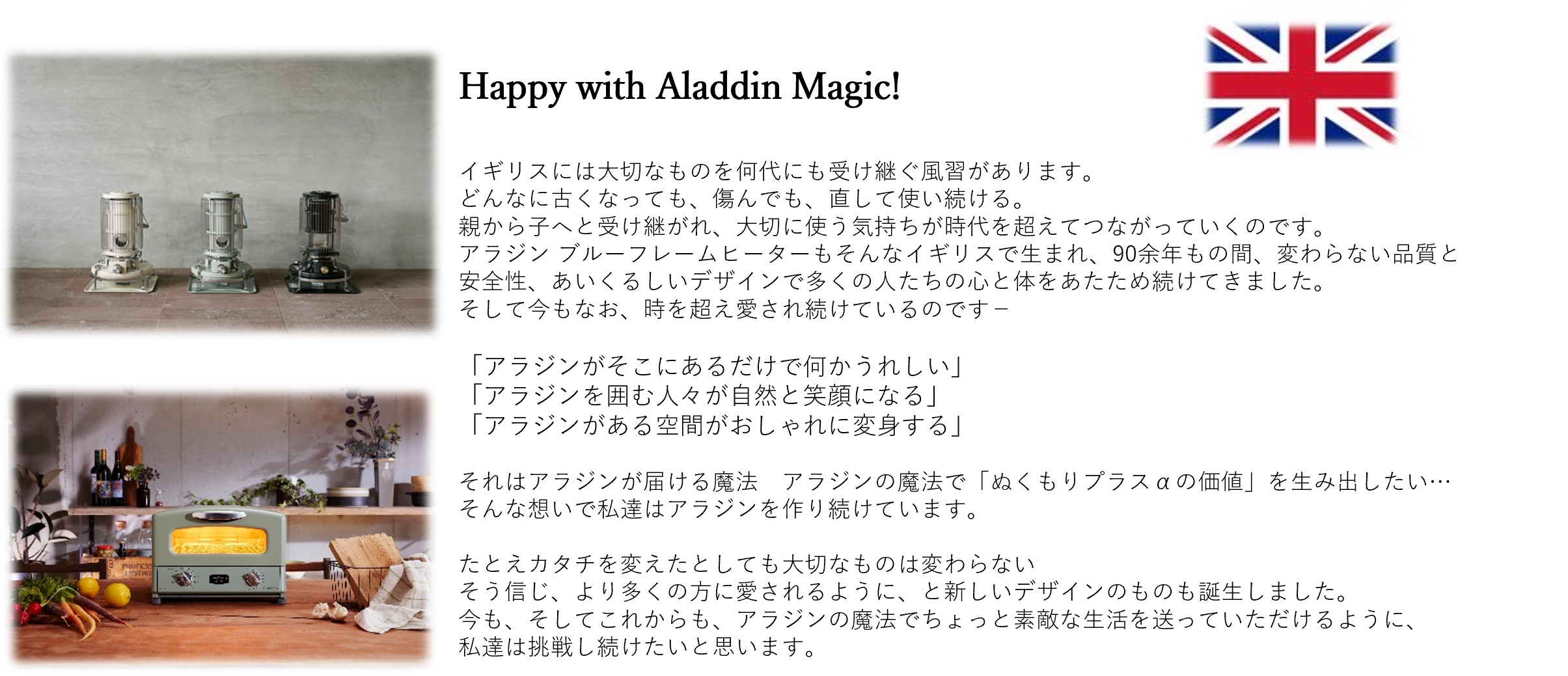 アラジンとは、90年以上愛され続ける「ブルーフレームヒーター」を代表とする