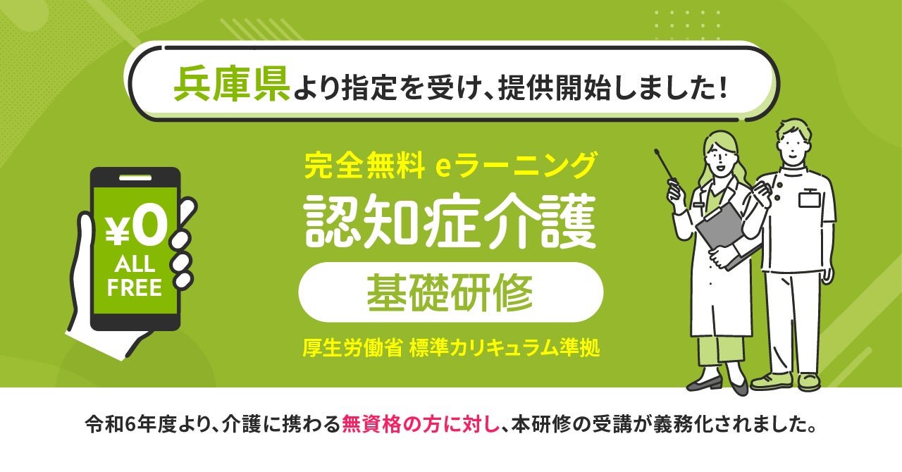 認知症介護基礎研修 兵庫県より指定を受け、無料提供を開始しました。