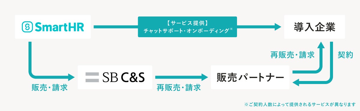 - SB C&S:提携している販売パートナーに対して、「SmartHR」の再販売と請求を行います。