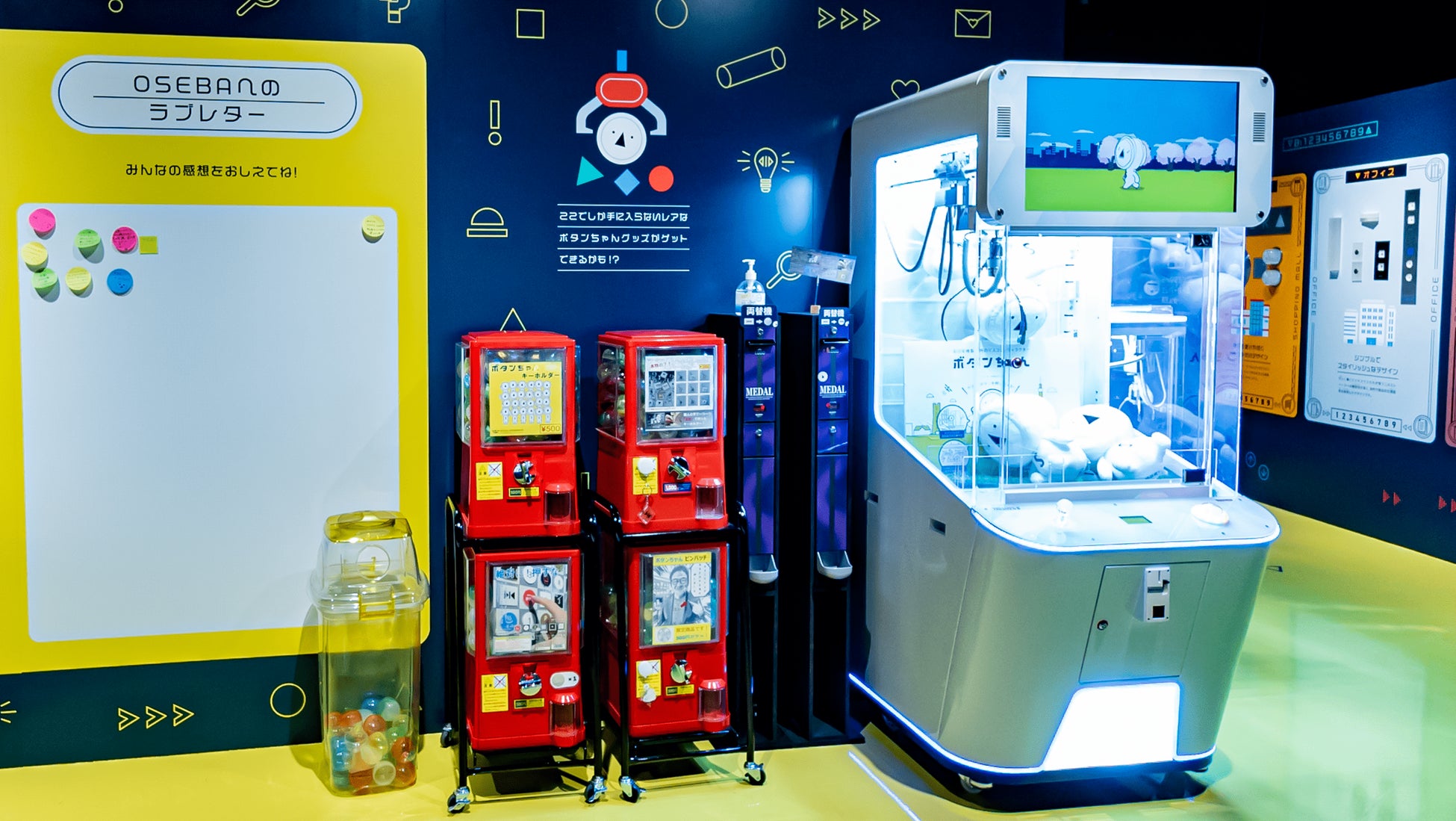 「絶対に押すな」と書かれたボタンや、マヨネーズのキャップ型のボタンなどユニークなボタンの数々を心ゆくまで押すことができます。フォトスポットとしてもオススメ!